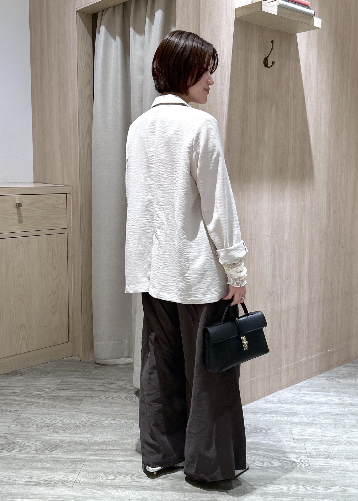 サラッとした柔らかい素材でワイドなシルエットですがストンと落ちてくれるのでスッキリ着られます。