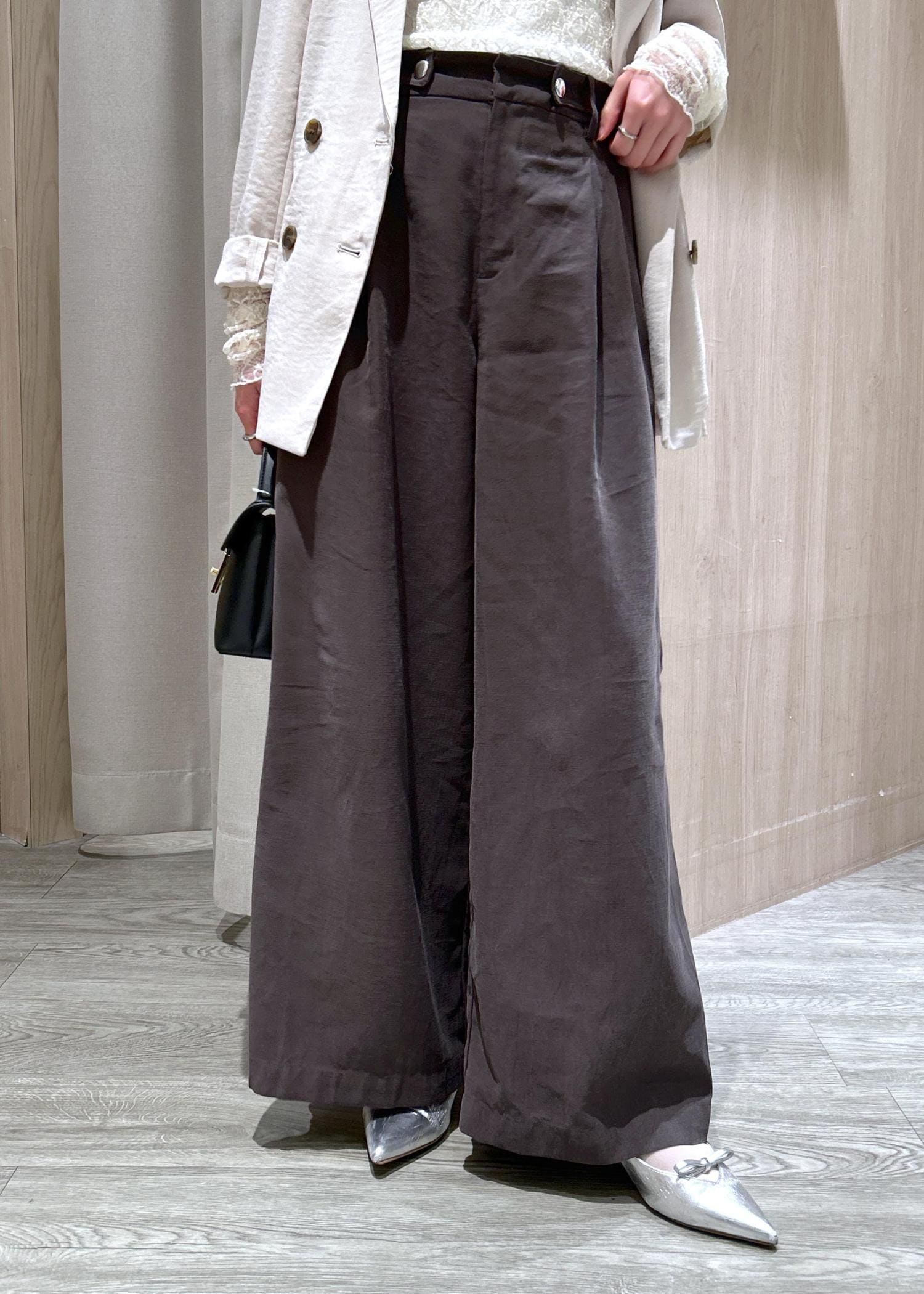 VISツータックワイドパンツ/イージーケアチャコール / S¥7,689レビュー身長155cm、ヒールを履いてMサイズ着用で踵が隠れる丈感です。