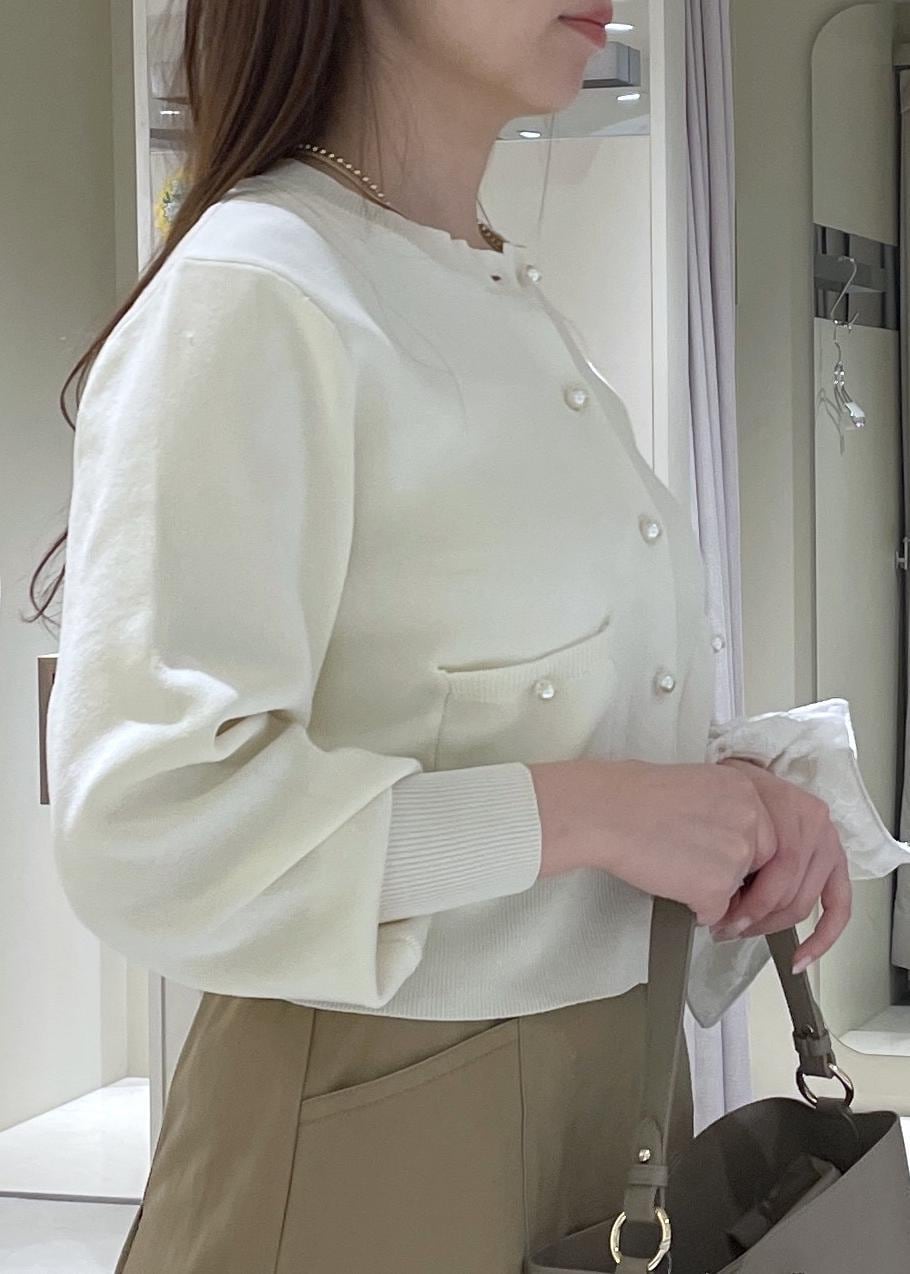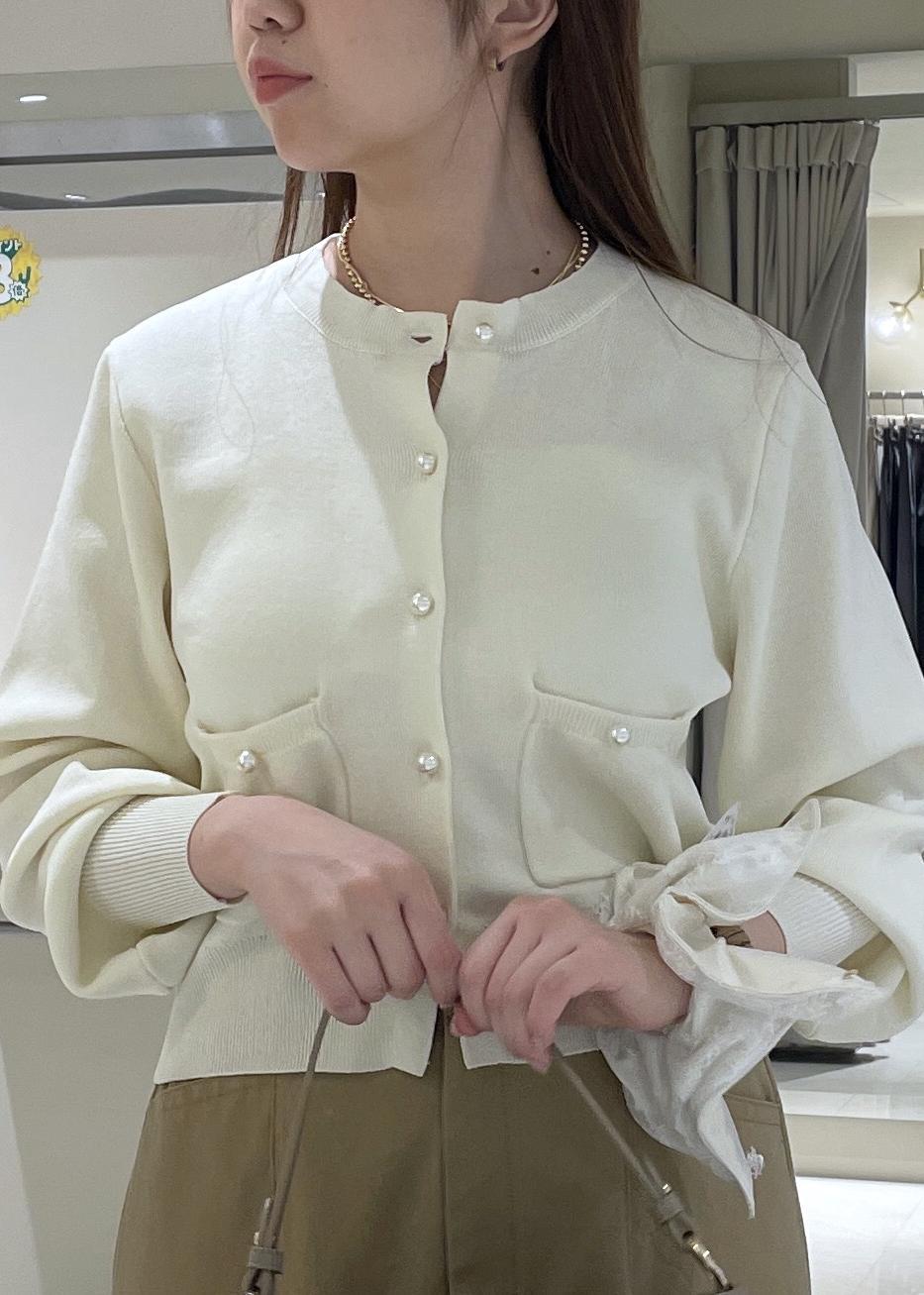 VISパールボタンカーディガンオフホワイト / F¥6,589レビューパールボタンがフェミニンで大人っぽい、カーディガンです。袖先と裾がリブになっているので、ウエストマーク効果や、腕まくりのしやすさがありとても便利です。