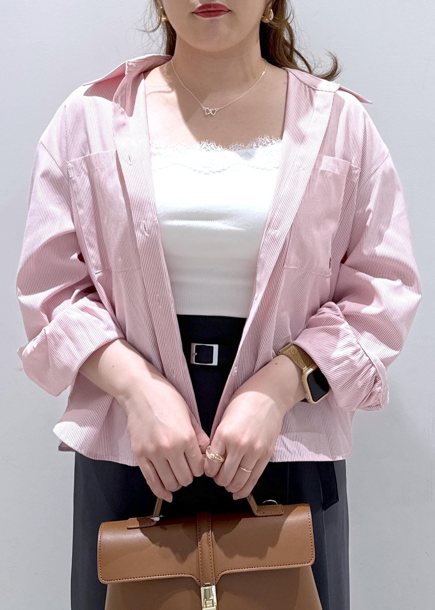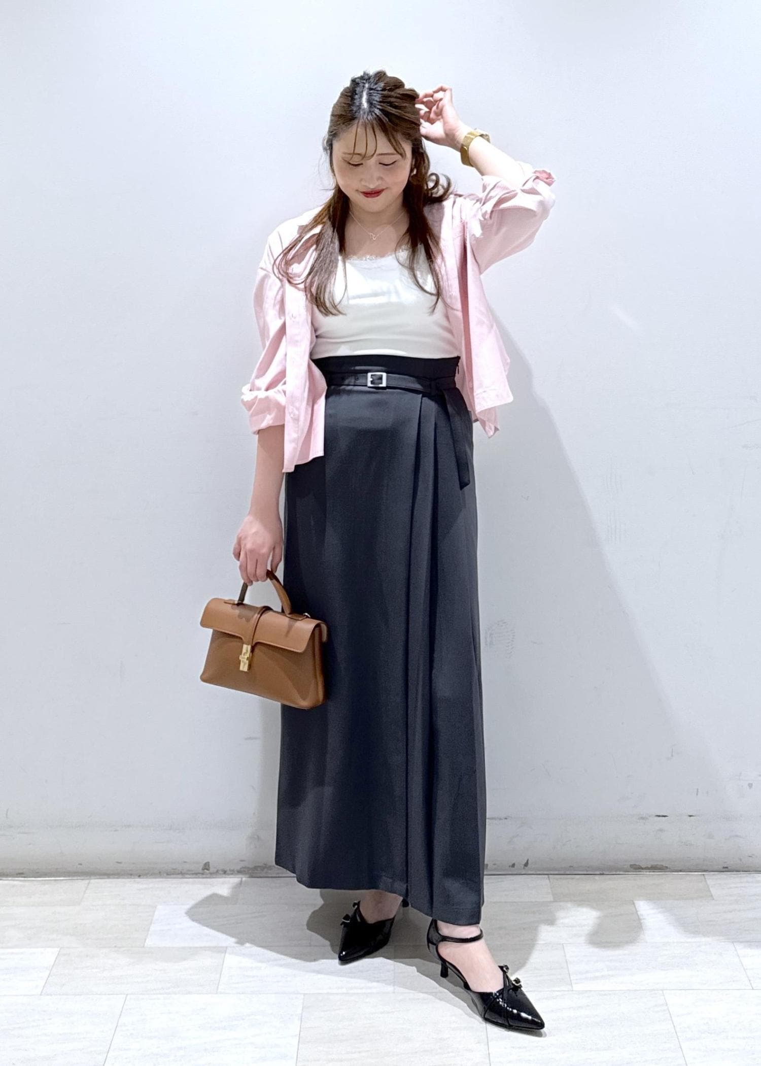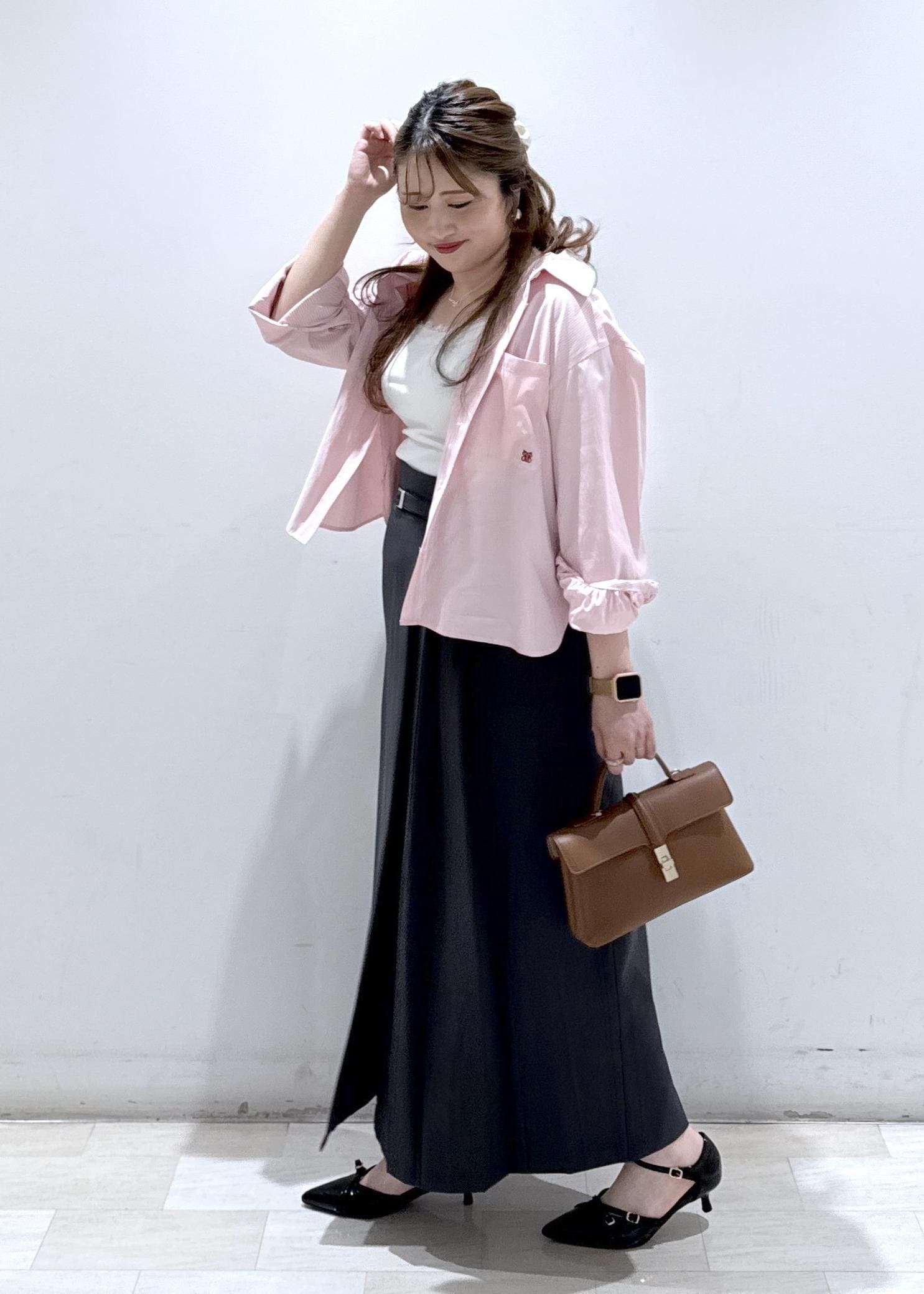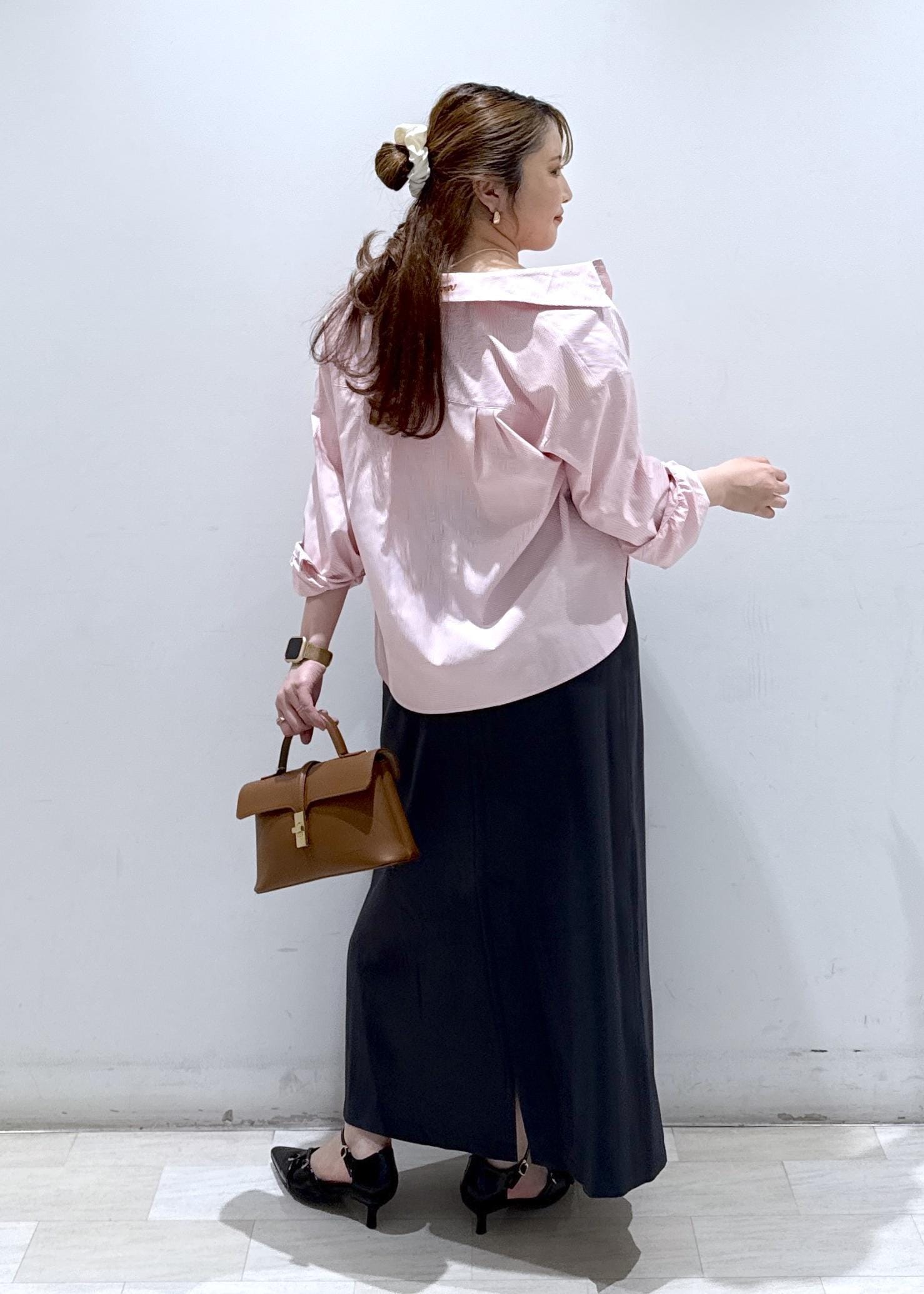 今回は新作で入荷しましたVIS×スイマーとのコラボアイテムのシャツに、Iラインのタイトスカートと合わせて綺麗めカジュアルなコーディネートにしてみました!骨格ストレートなので、シャツを着ると上半身が大きく見えるので、中にインナーを着て羽織りとして着用するとスッキリとした印象になるのでオススメです。ストライプ柄なのでより縦を強調し着痩せして見えるのでぜひ真似してみてください♪