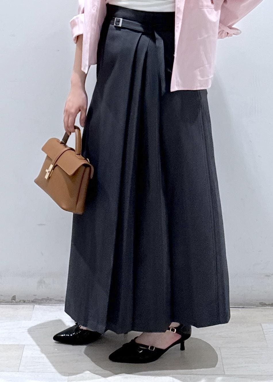 VISアシンメトリープリーツスカートチャコール / M¥7,689レビューロング丈のベルトディテールプリーツスカート⭐︎サラサラとした春夏に使いやすい軽い素材。ウエストの後ろにゴム付きなので伸び感もあって安心です。元々Iラインのタイトめなスカートではありますが、サイドにプリーツのデザインが入っているので動きが出てオシャレです。身長157cm/Mサイズ着用で足首ぐらいの長さでした。