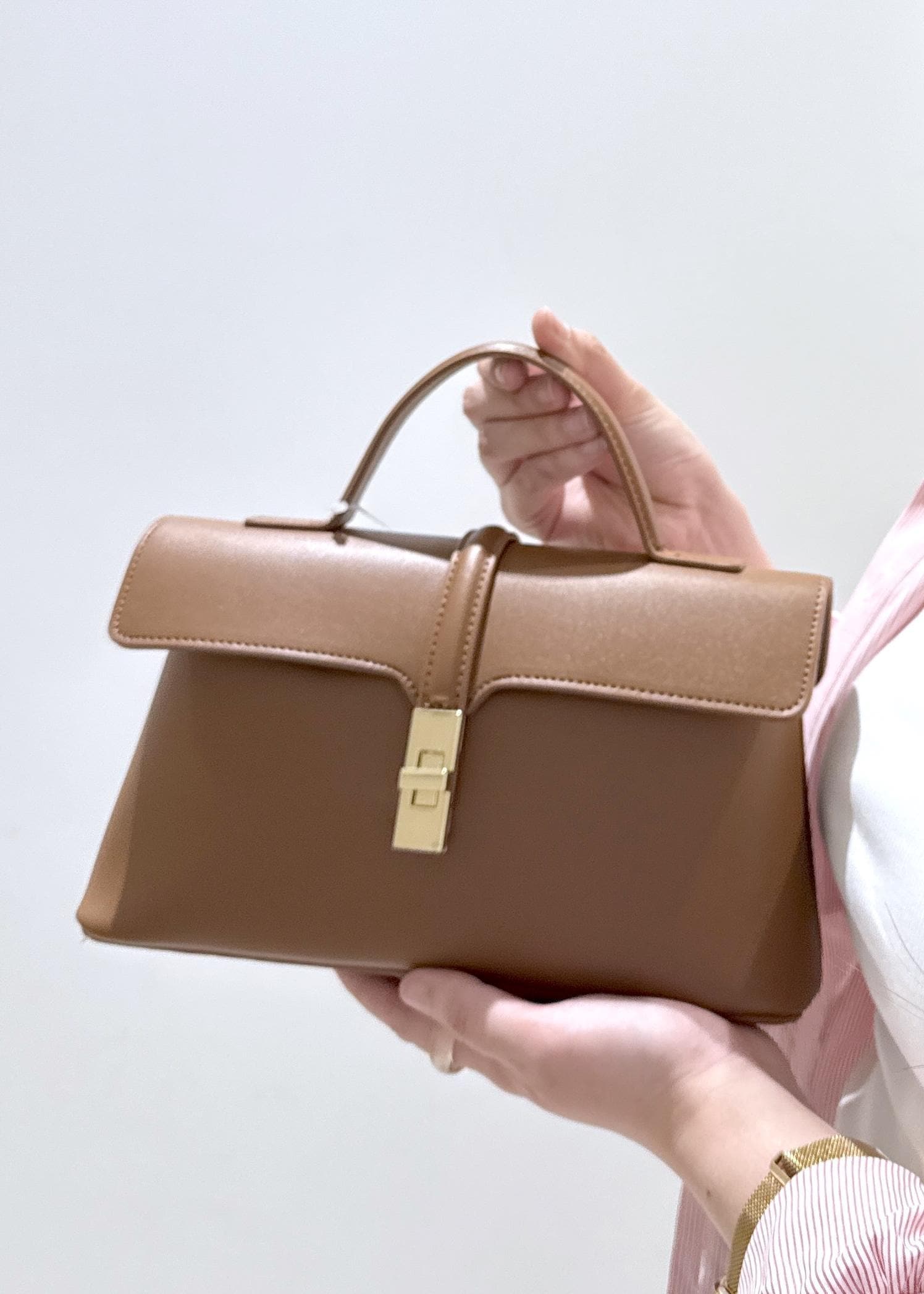 VISひねり金具ワンハンドルミニショルダーバッグ/2WAY,WEB限定カラーありキャメル / F¥5,489レビュー台形型のワンハンドルバッグ⭐︎小さめなバッグで見た目以上に物もたくさん入り軽いです。シンプルなデザインではありますがゴールドの金具がキラッと光り、高見えする商品だと思います。マチ有りなので、折り畳み財布や携帯、薄手のハンドタオル、リップやミラーなどが入りました。中にショルダー紐も付いているのでお洋服に合わせて変えることができます。