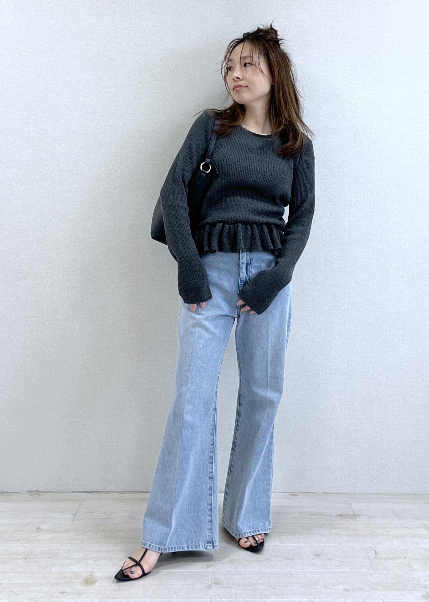 VISカラーフレアデニムパンツサックス / S¥8,899レビュー152cmでS着用し、ペタンコ靴でも床につきませんでした。キレイなフレアシルエットと後ろポケットが高めの位置にあり、脚長効果抜群!今年は細身シルエットも欲しいですよね。柔らかいデニムでゴワつきなく着用できました。履き馴染みがでてくるとより着心地が良さそうです!どのカラーも素敵なので、迷い中…