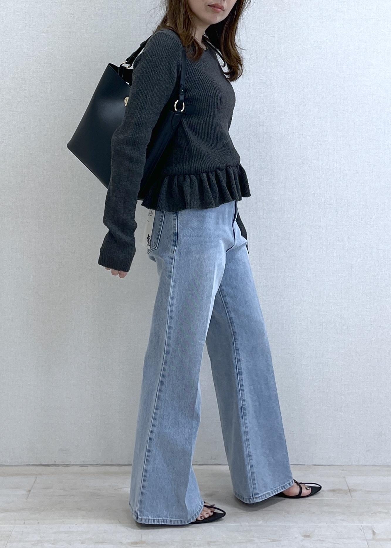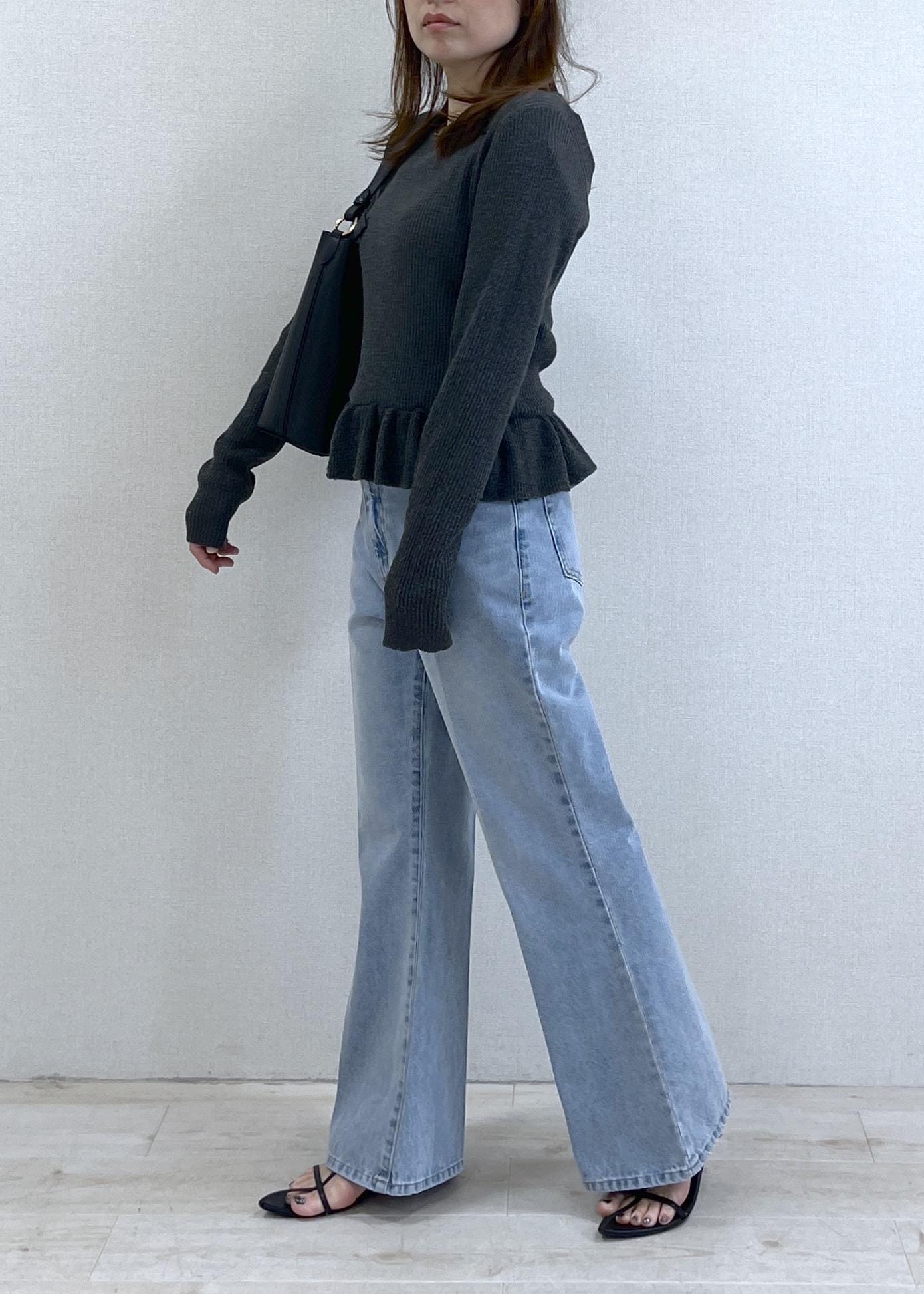 VISスラブヤーンペプラムフリルニットプルオーバースミクロ / F¥4,150レビュー152cmでFサイズ着用し、着丈は腰に少しかかるくらいの丈。身体に程よくフィットするコンパクトシルエット。収縮性あり、とても柔らかいので着心地◎フリルデザインが腰回りやお腹周りをカバーしてくれます。