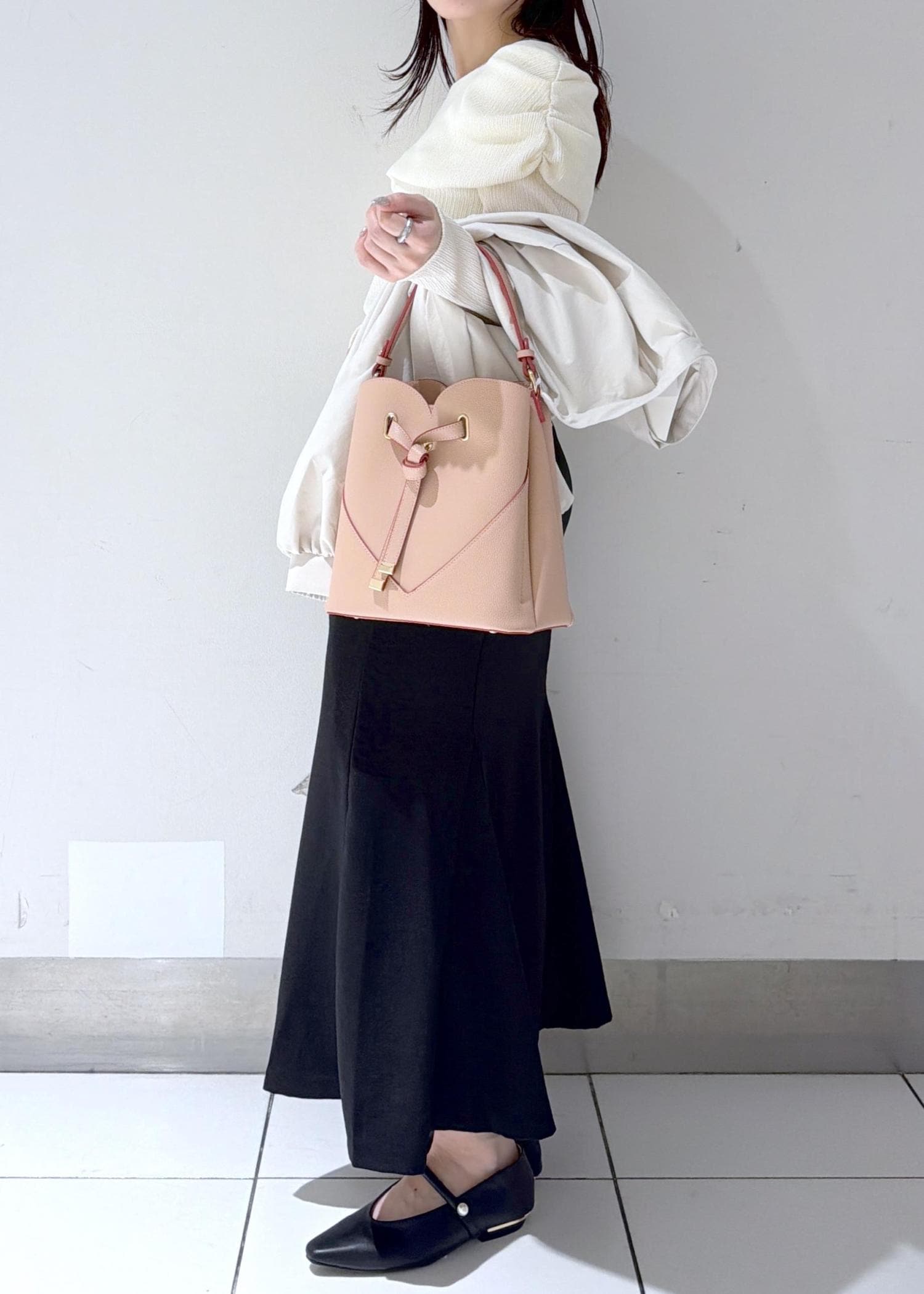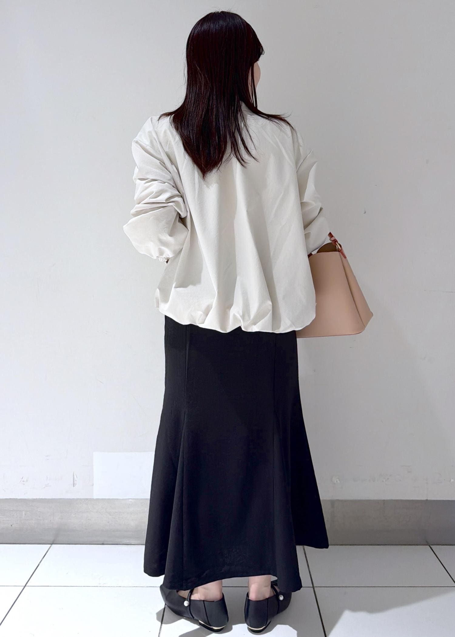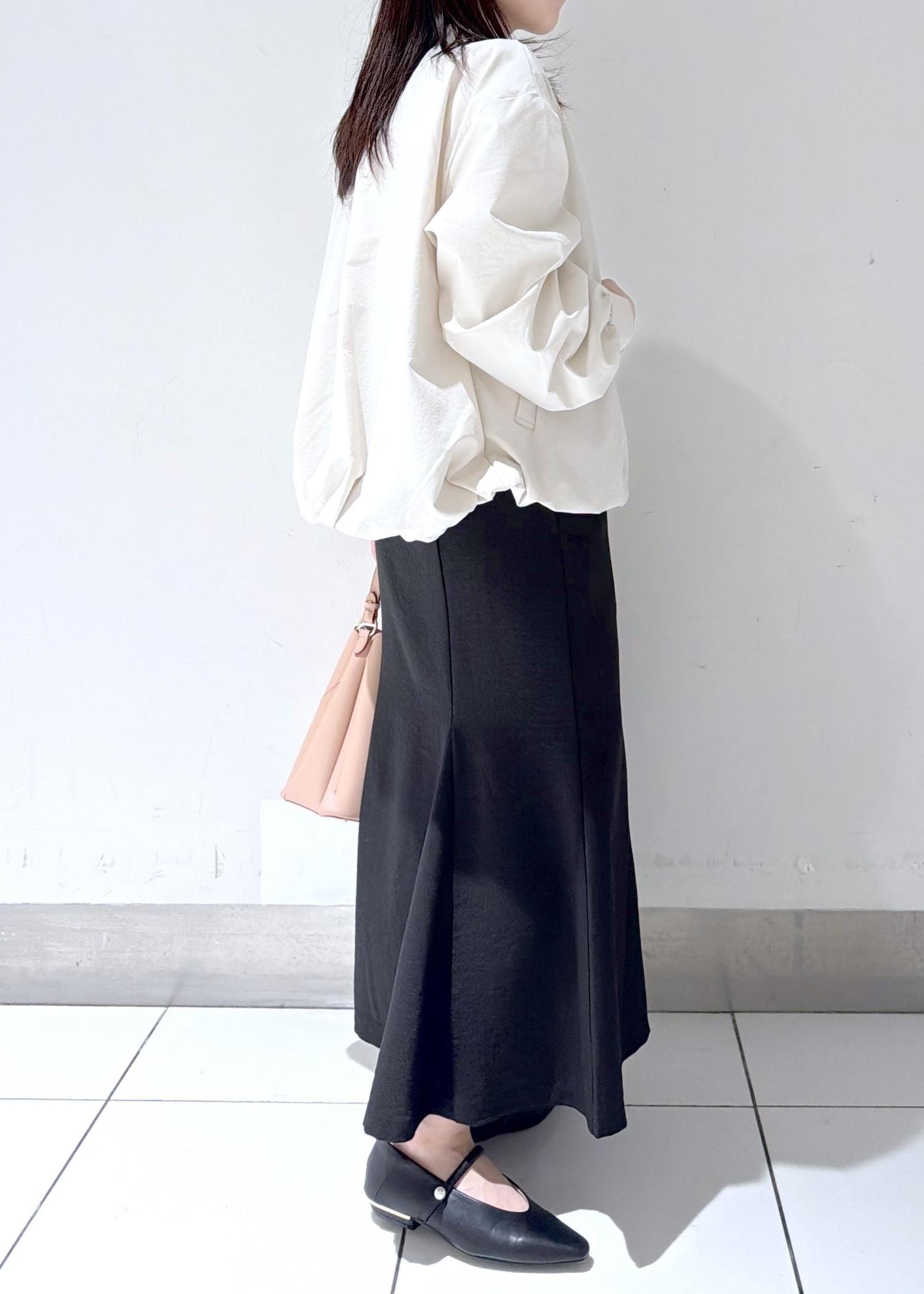 シンプルながら女性らしいシルエットで、カジュアルになりすぎずきれいめに着こなせるスタイリングです☺︎