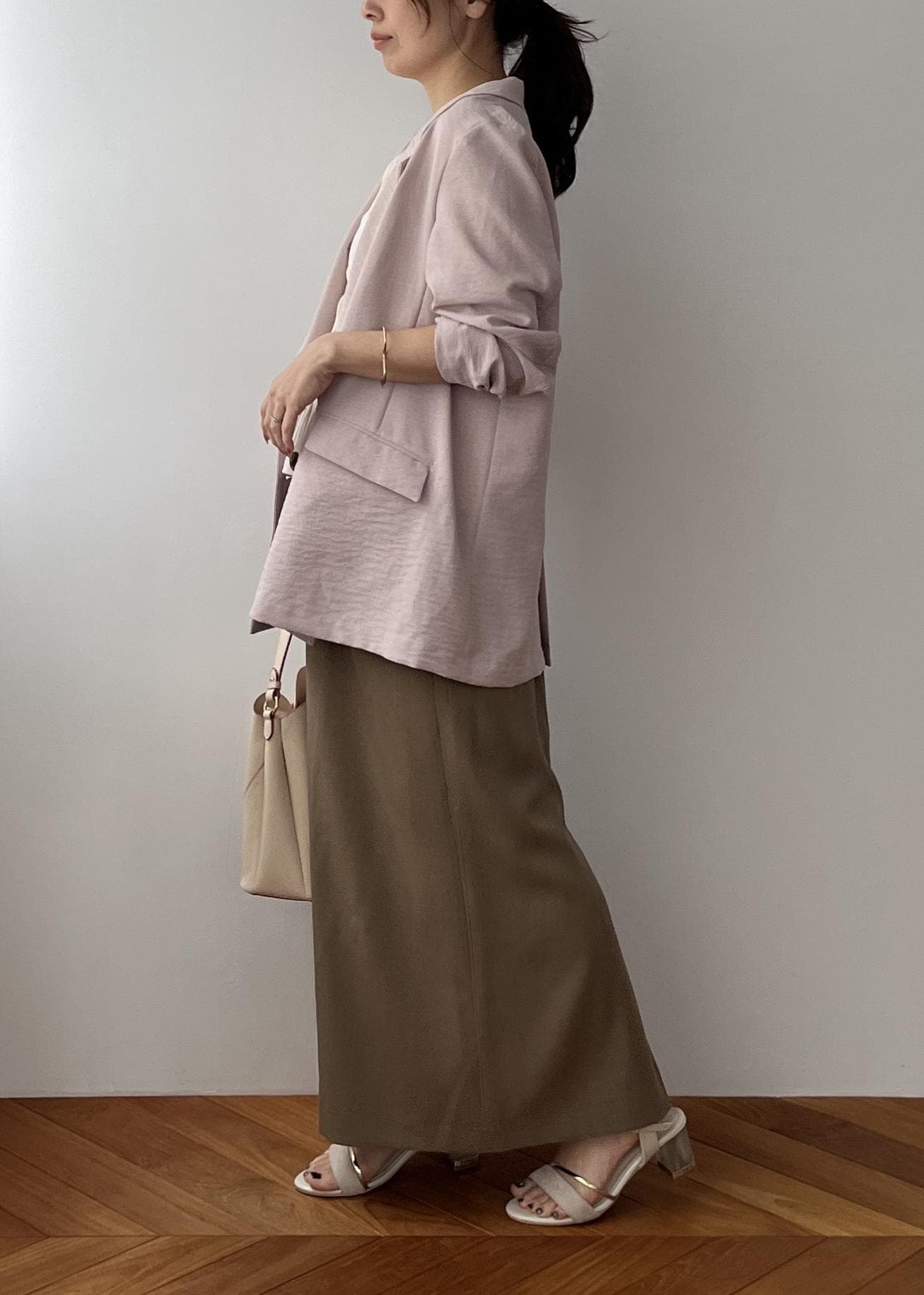 NEW!VIS美easyリネンライクテーラードジャケット/イージーケア・接触冷感・セットアップ対応ピンク / S¥7,909レビュー152cmでSサイズ着用し、着丈はお尻が隠れる丈。毎年大人気の美easyシリーズ!夏まで着られるサラッとした麻調の素材感が本当にすき♡毎年買い足してしまうほどです。シワになりにくく、サッと羽織るだけで決まるシルエットで◎オーバーまでいかないゆるっと細身なサイズ感が大人なイメージでお召しいただけます。