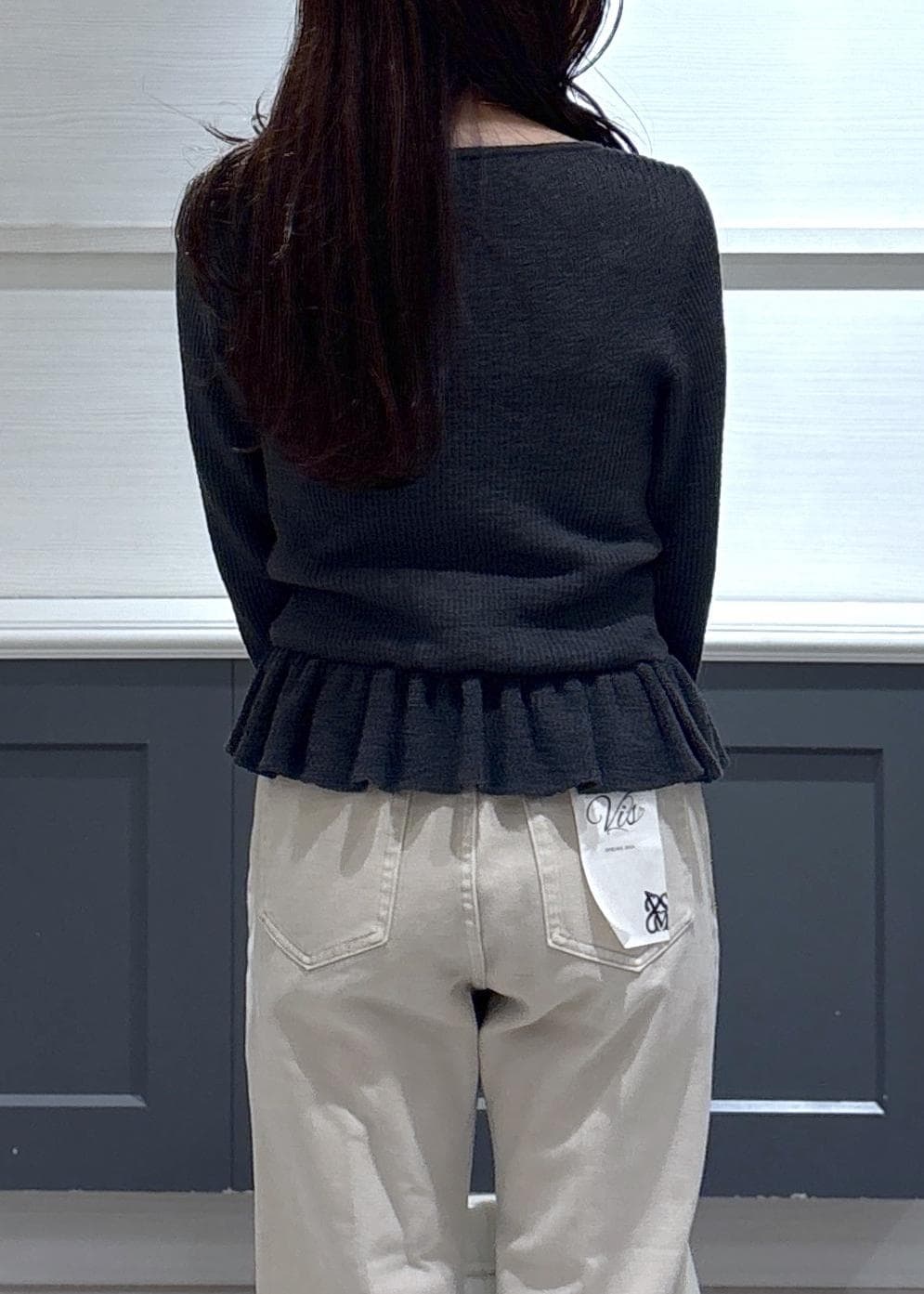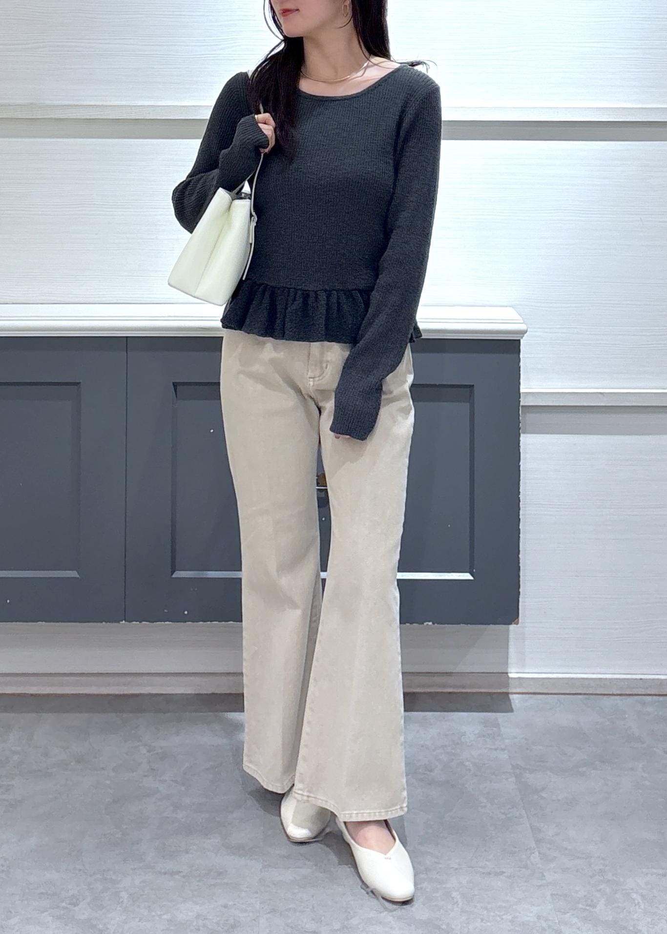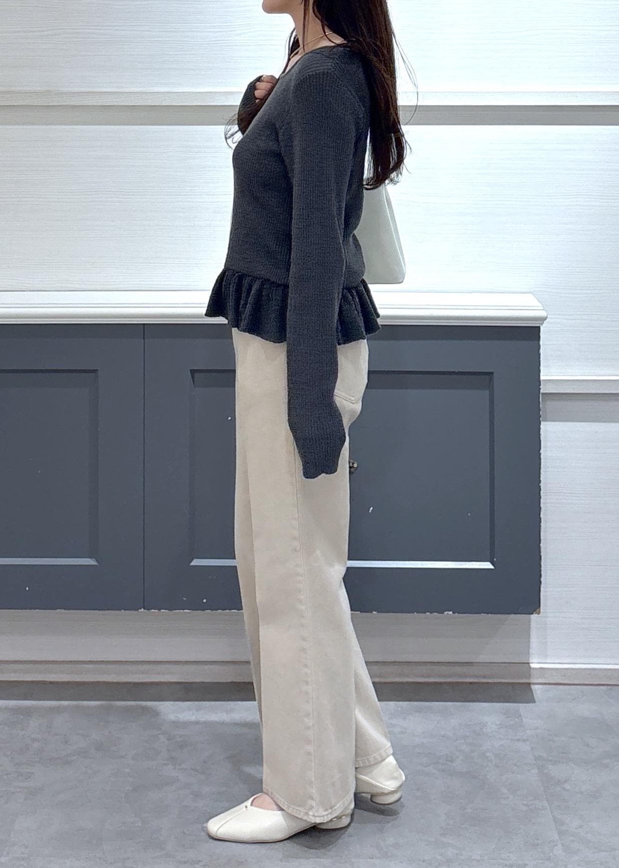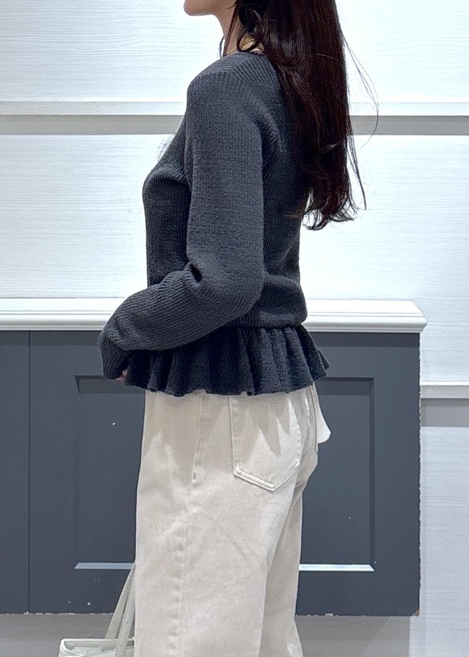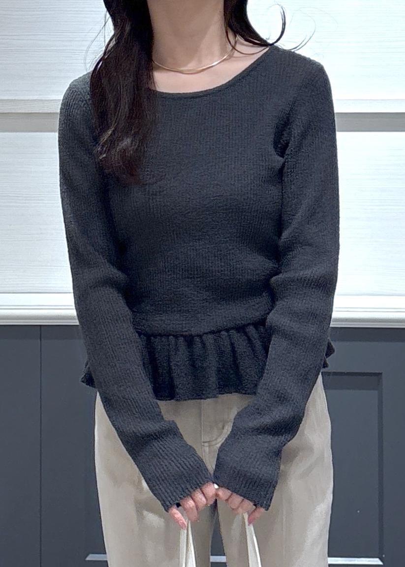 スラブヤーンペプラムフリルニットプルオーバー