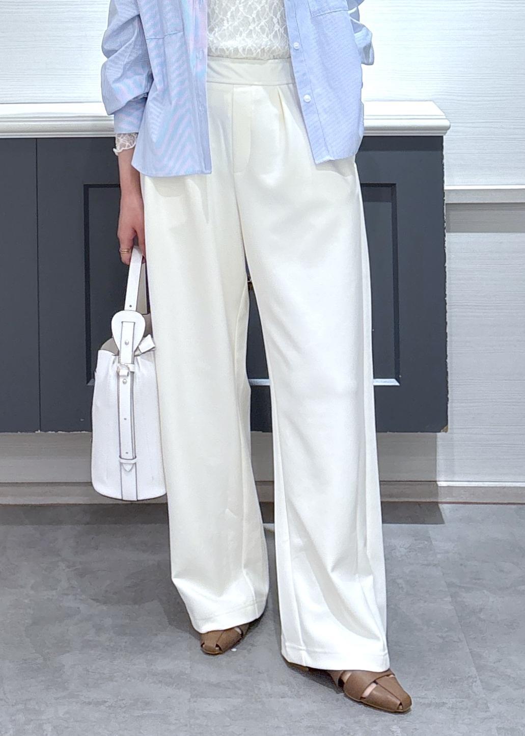 VISカットカーブスラックスパンツオフホワイト / F¥6,589レビュー156cmでギリギリ引きずらない丈感でした。