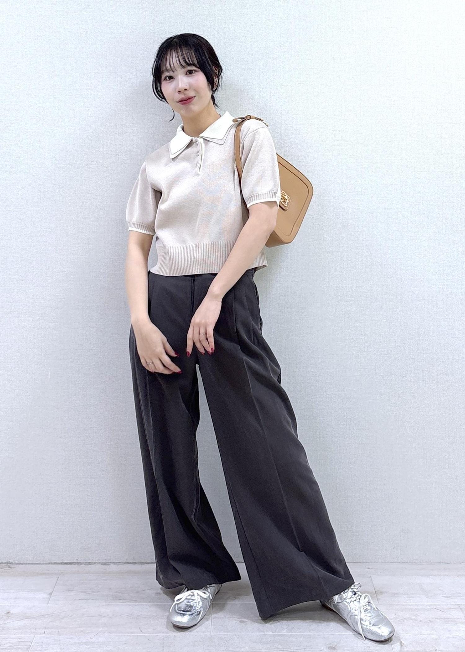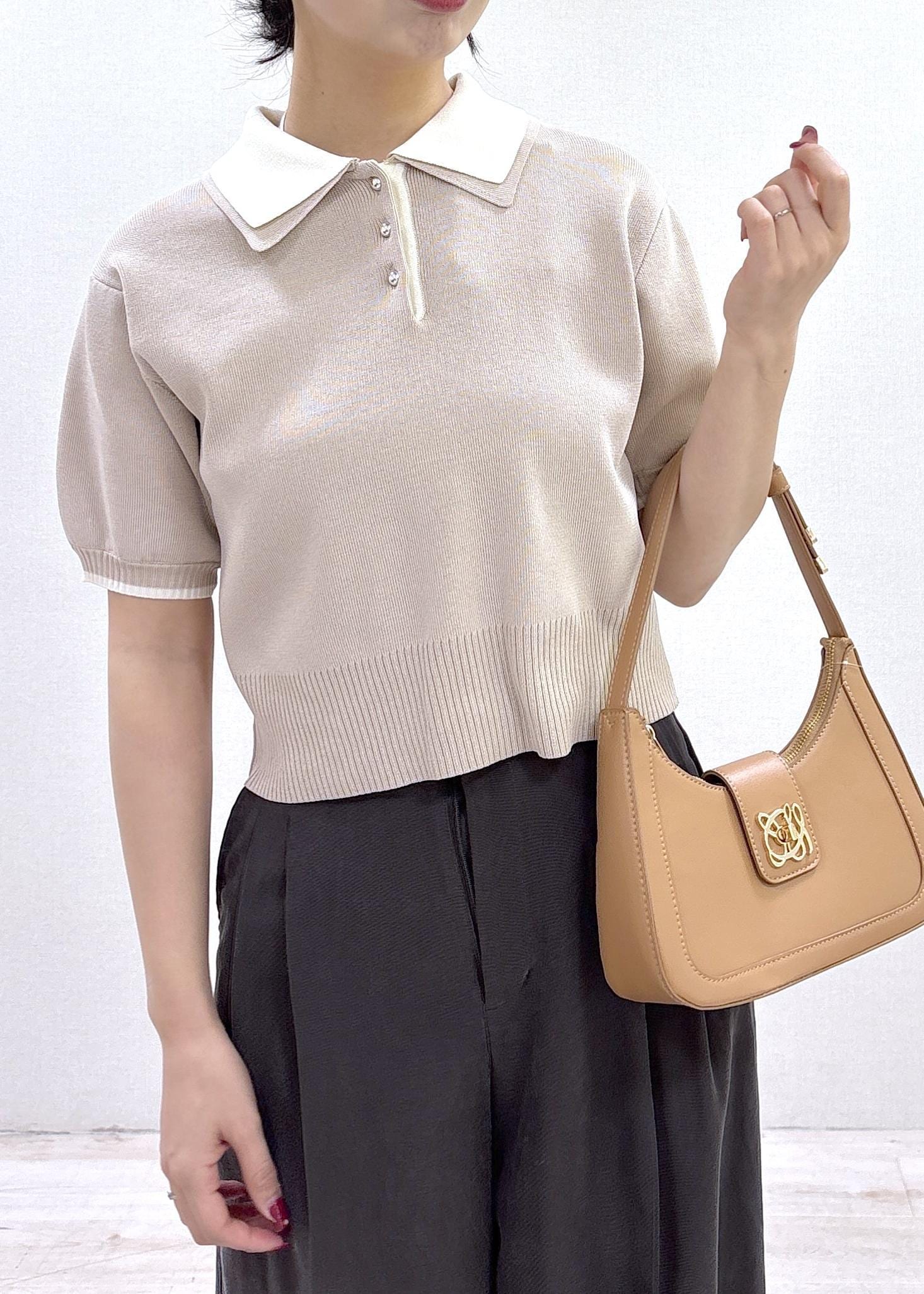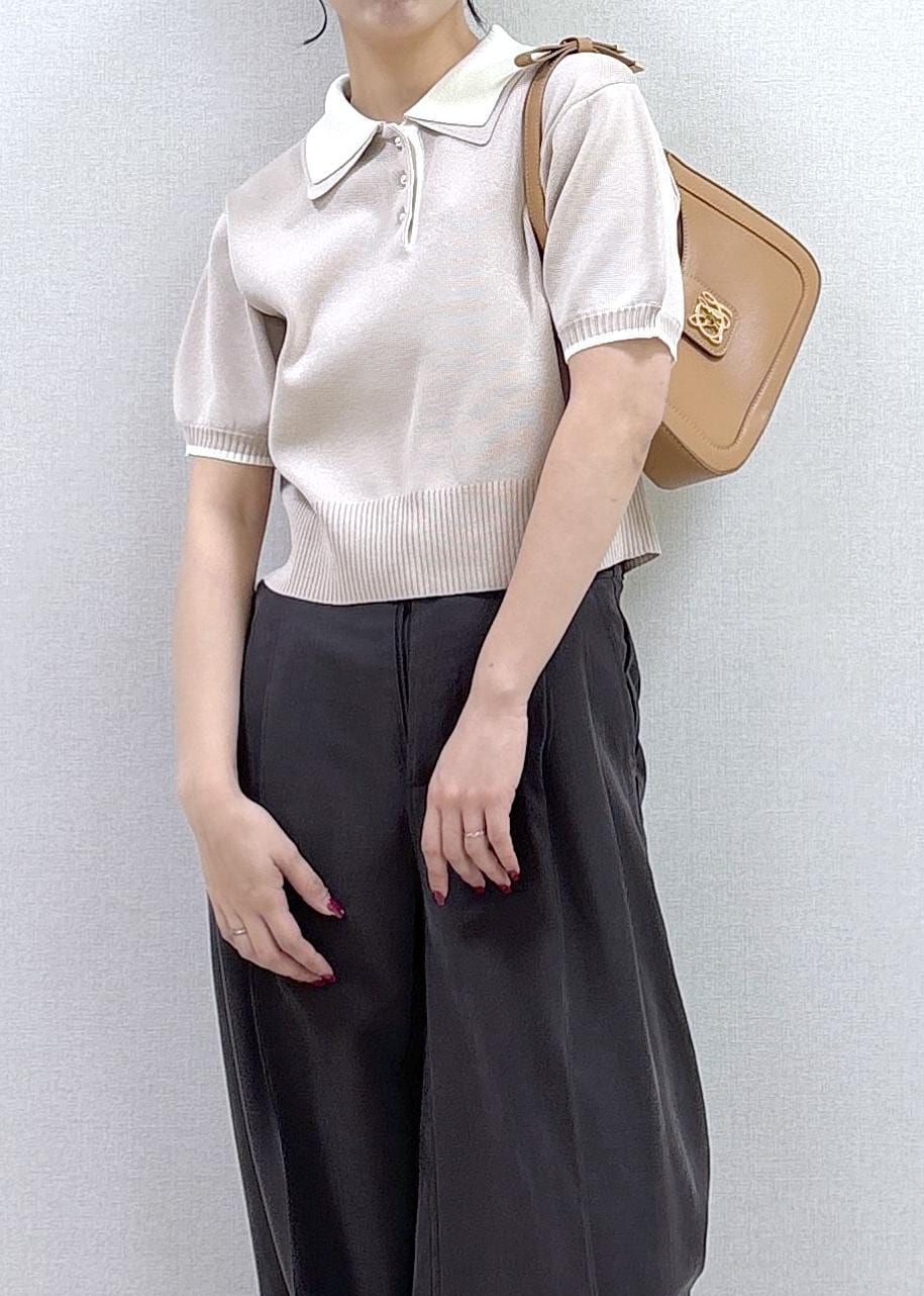 NEW!VISダブルカラー半袖ポロニットトップス/イージーケア・WEB限定カラーベージュ / F¥5,489レビューコンパクトなシルエットと丸みのある襟が女性らしさを引き立てるトップスで程よくフィットするサイズ感で、骨格ウェーブの方でもバランスよく着こなせます!