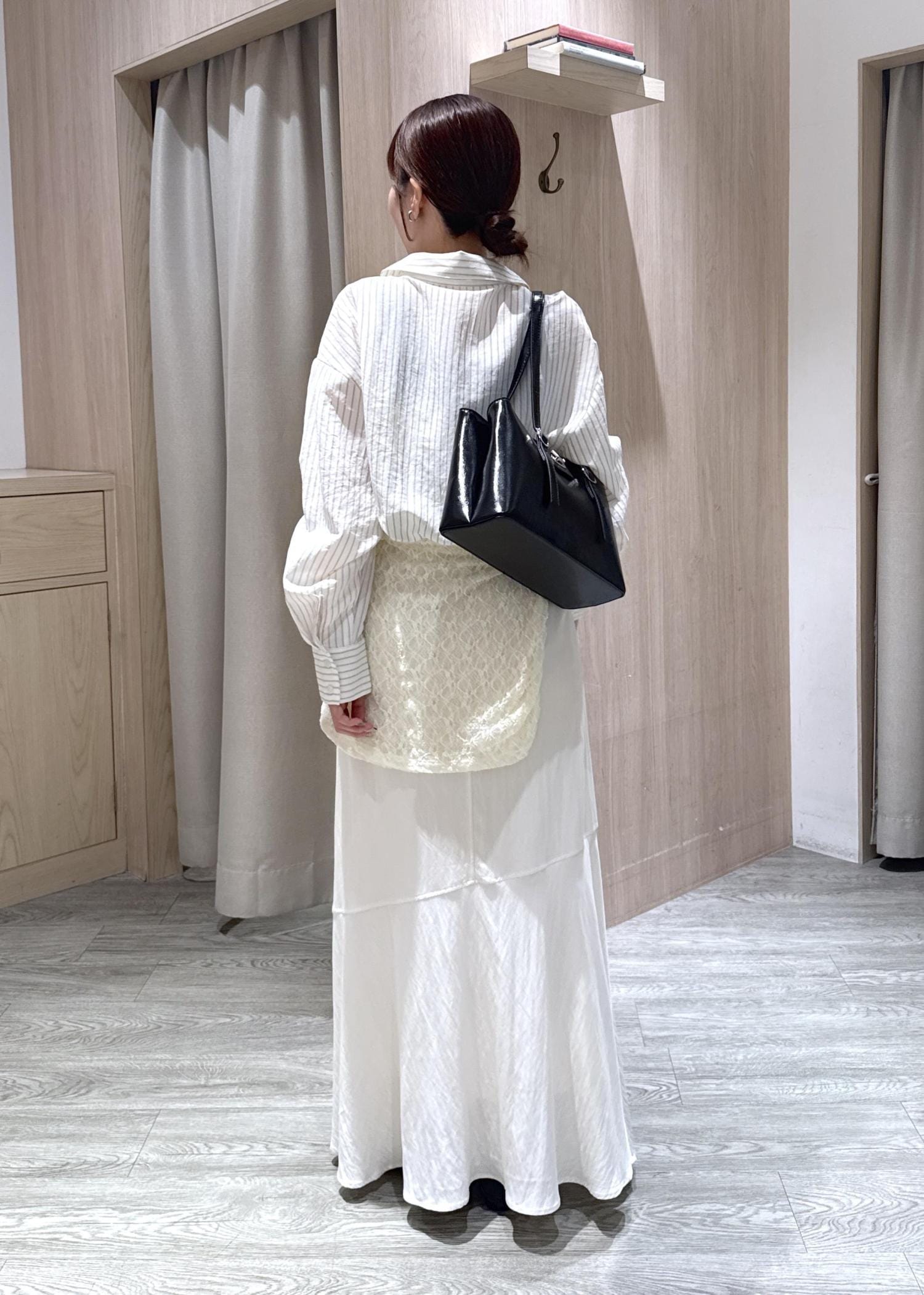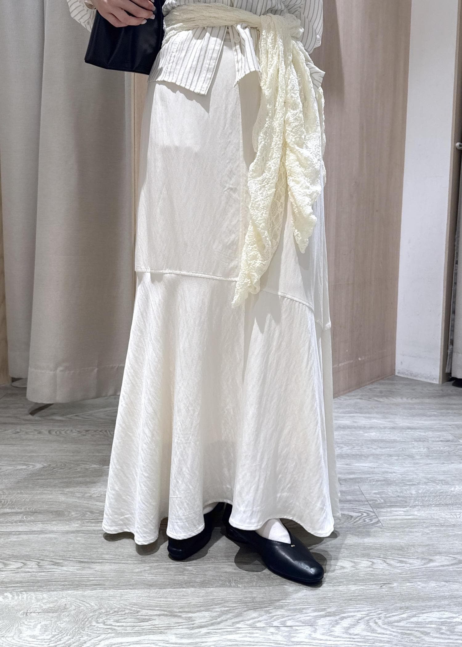 サテンツイル素材の夏まで使えるサラッとしたスカートです!裏地も付いているため、透け感も全く気になりませんでした!