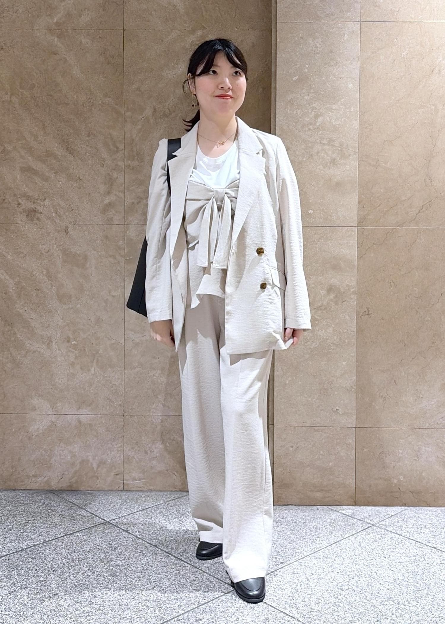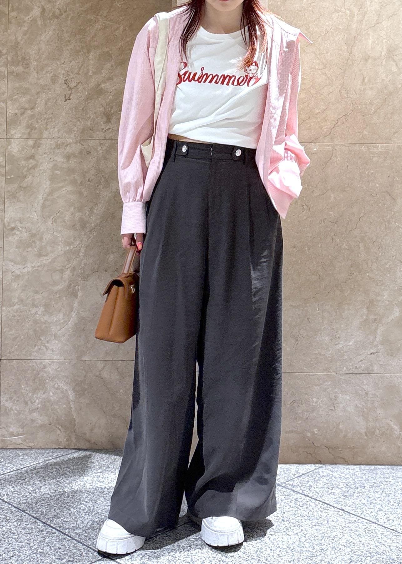 太めのシルエットですが、薄めのテロっとした生地感で足をきれいに見せてくれます!