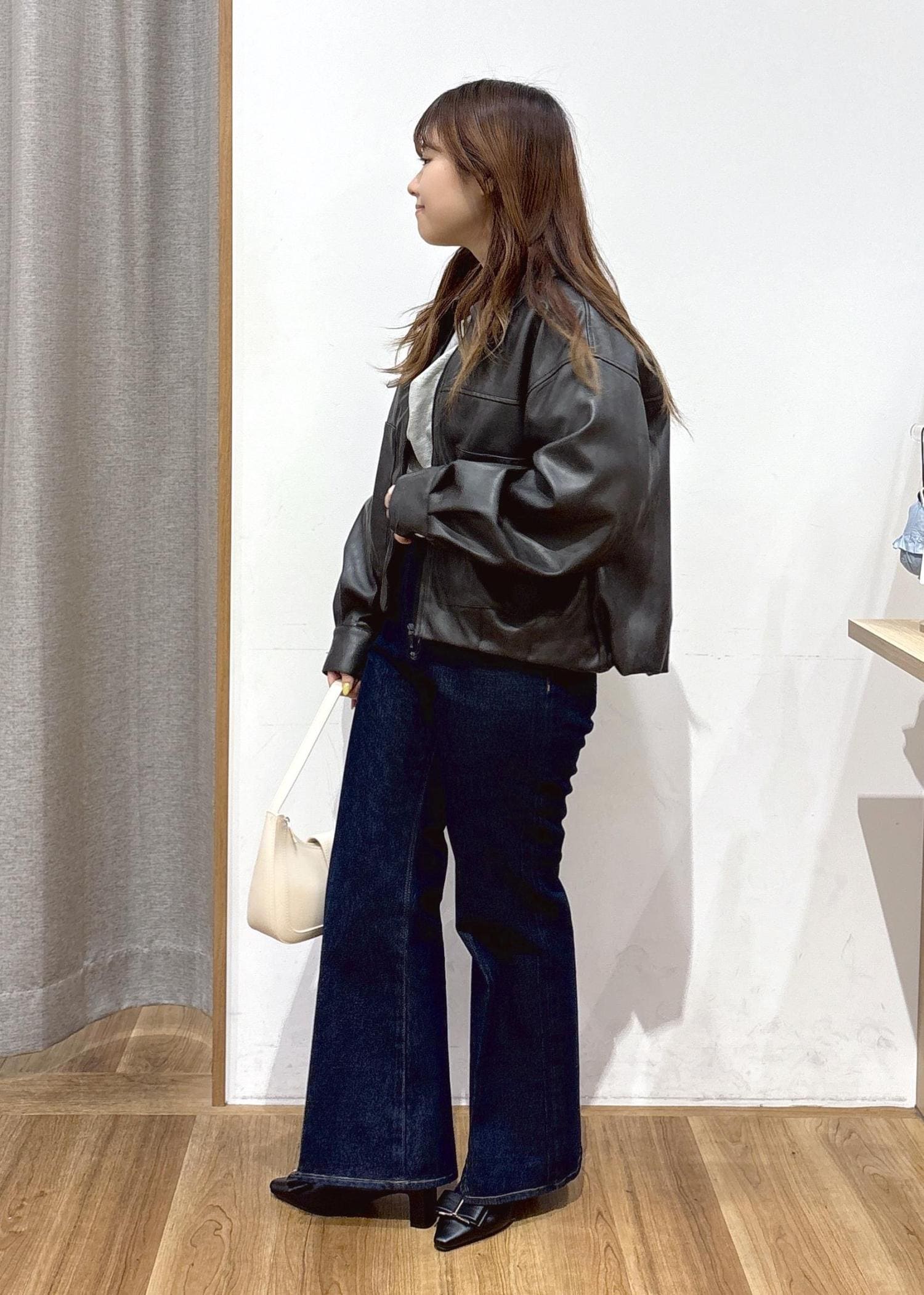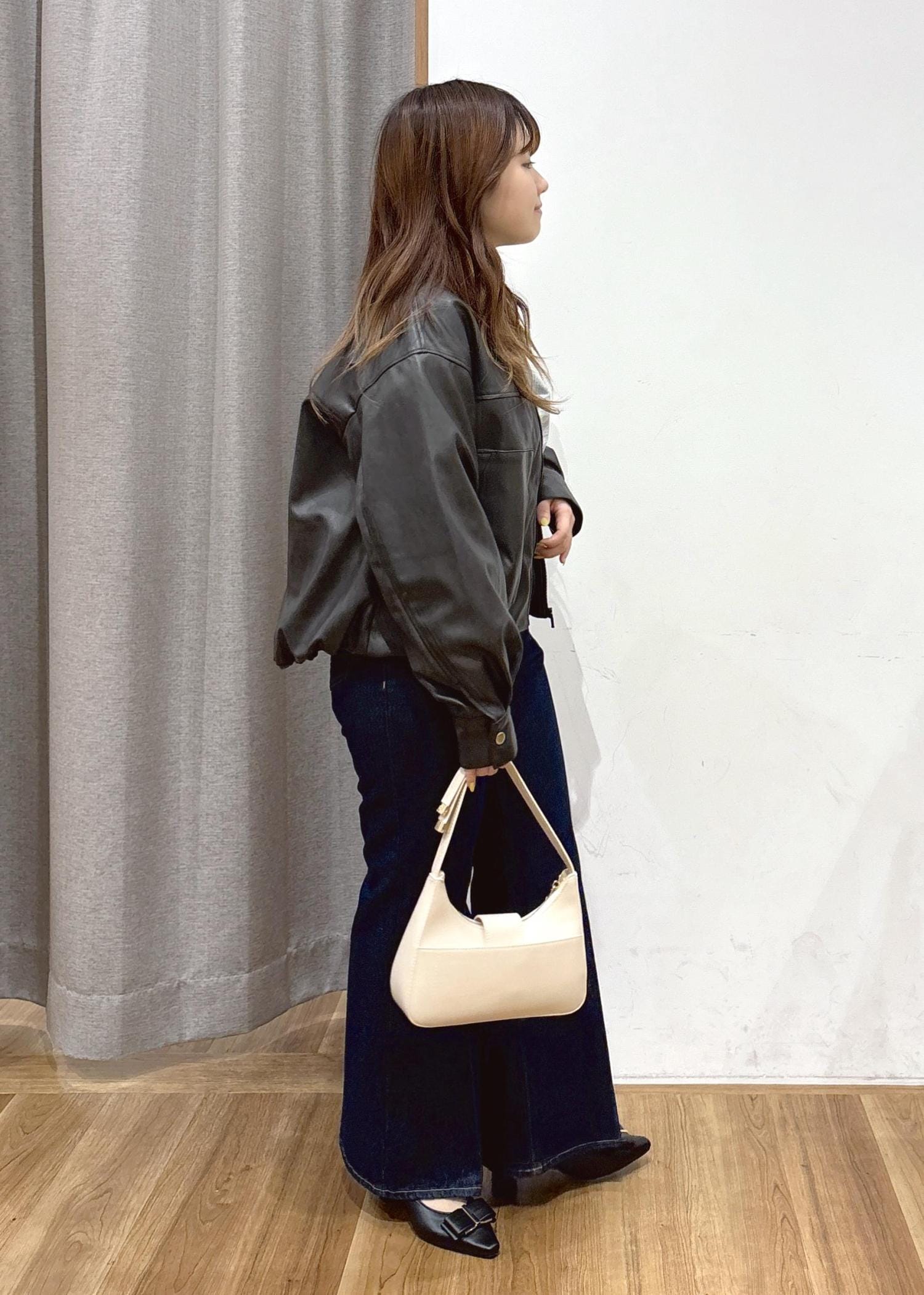 低身長でもほどよくオーバーサイズを楽しめるようなゆるっとしたサイズ感です。