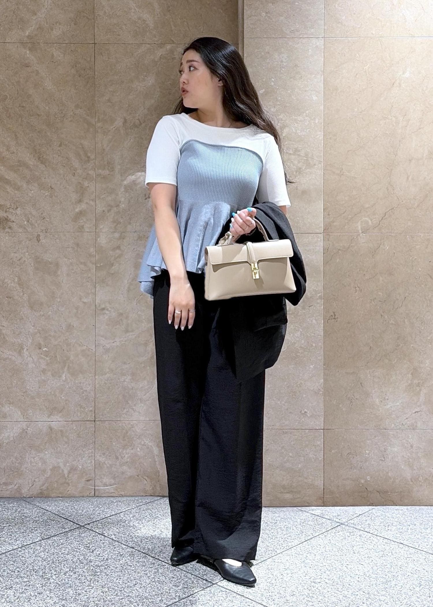 VISペプラムサマーニットドッキングカットソー/イージーケアサックス / F¥5,929レビューなったが柔らかくて、伸びやすく着用の際の二の腕部分があまり目立つことなくて凄く着用しやすいと感じました◎