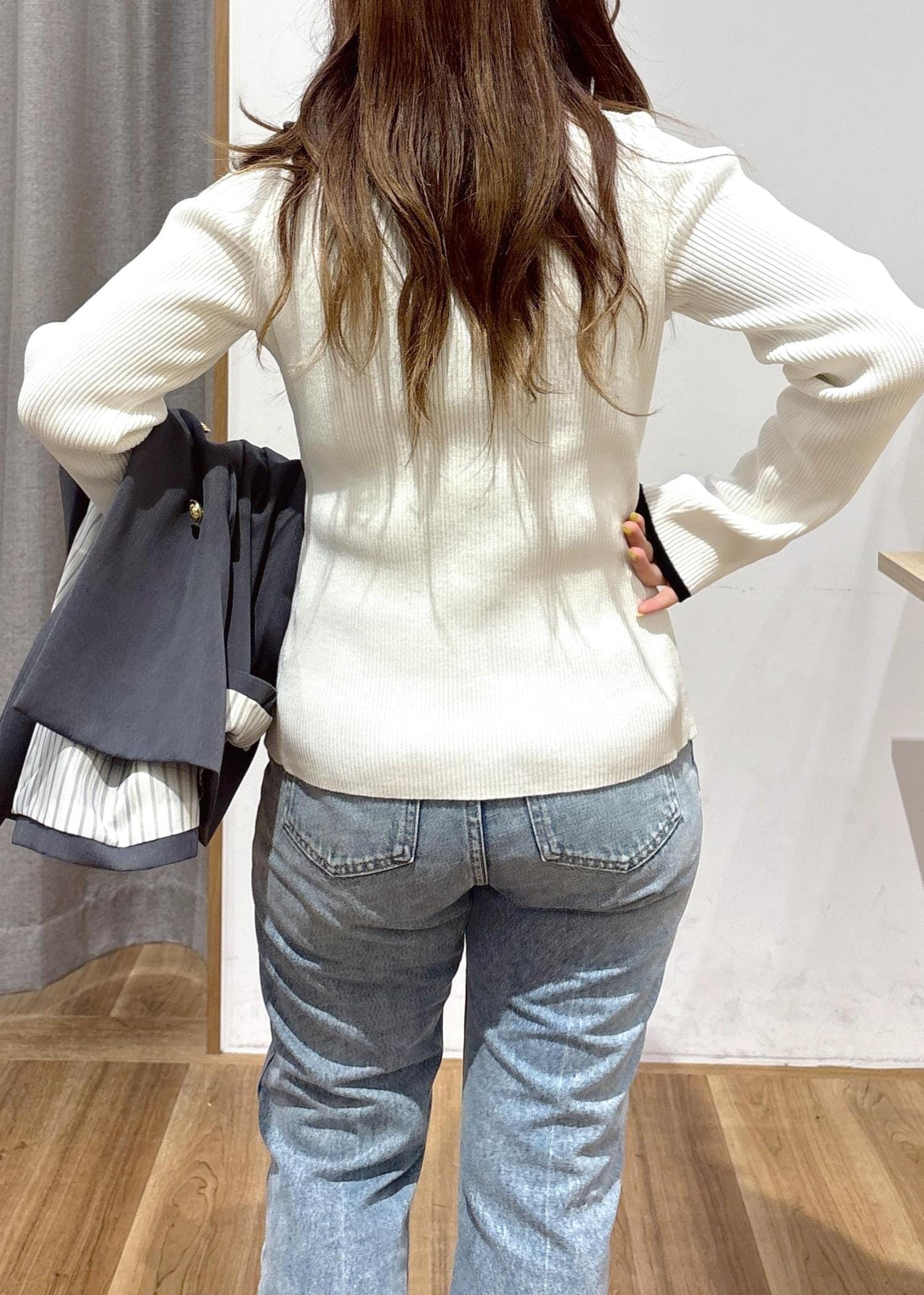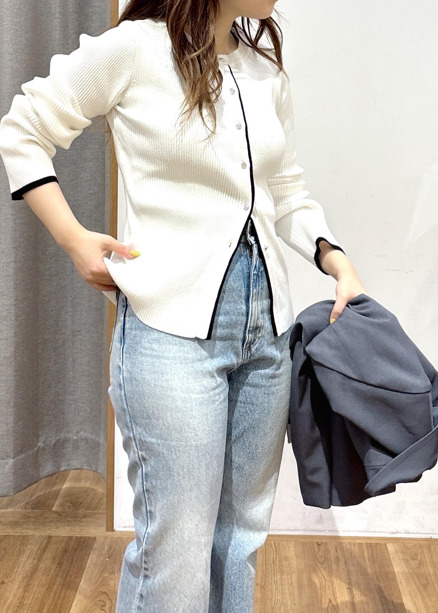 VISバイカラークルーネックカーディガンホワイト系 / F¥5,489レビュー【着用感】