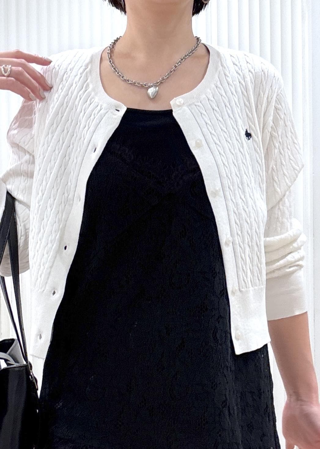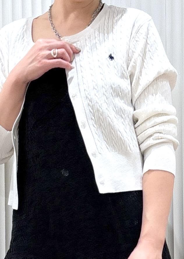 VIS【POLO BCS】VIS別注ミニケーブルノーカラーカーディガンホワイト / F¥6,930レビュー綿混の通気性のいい春夏に丁度いいニット素材です!着丈は165センチだと少し短めで腰骨の上くらいになりました。