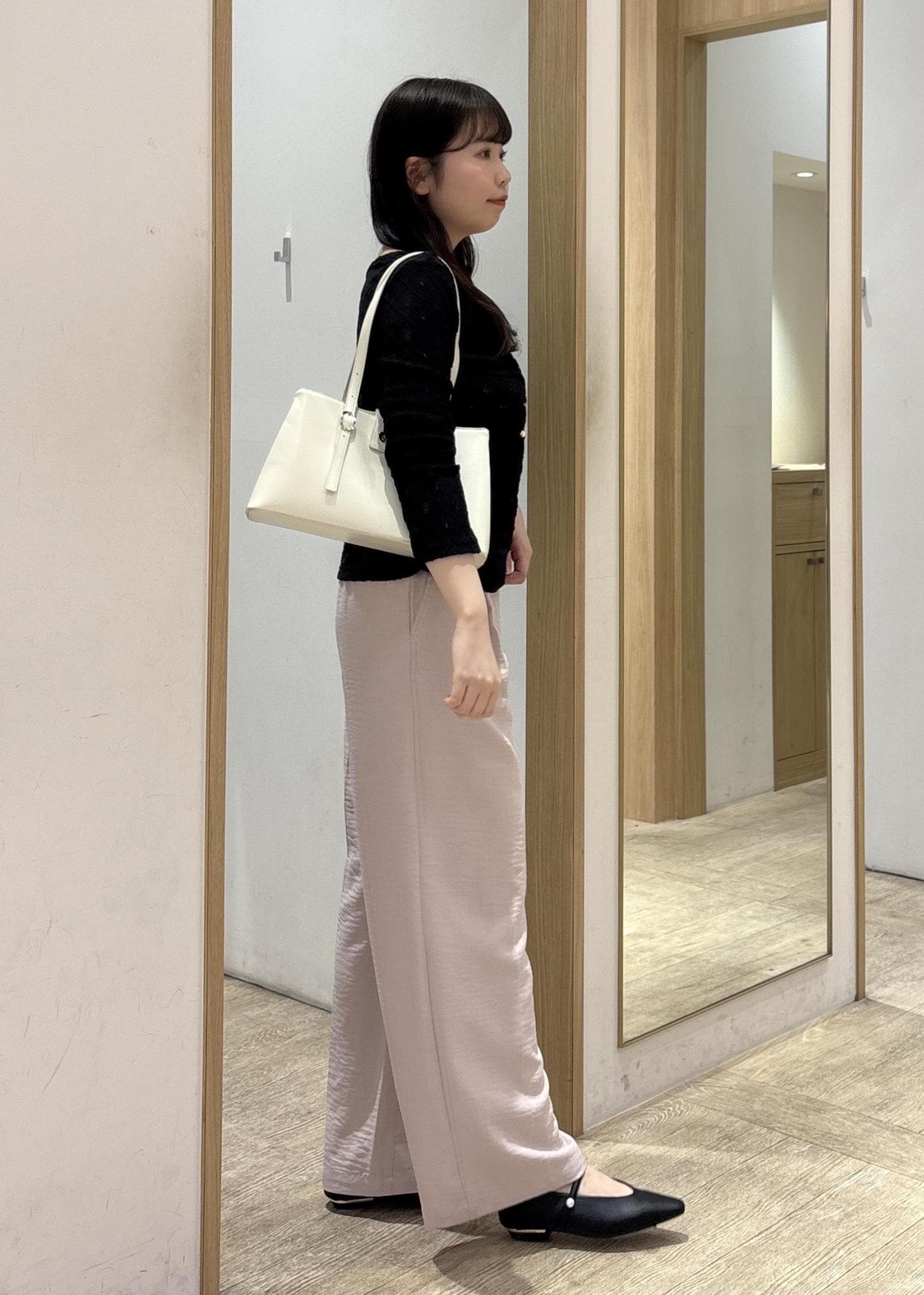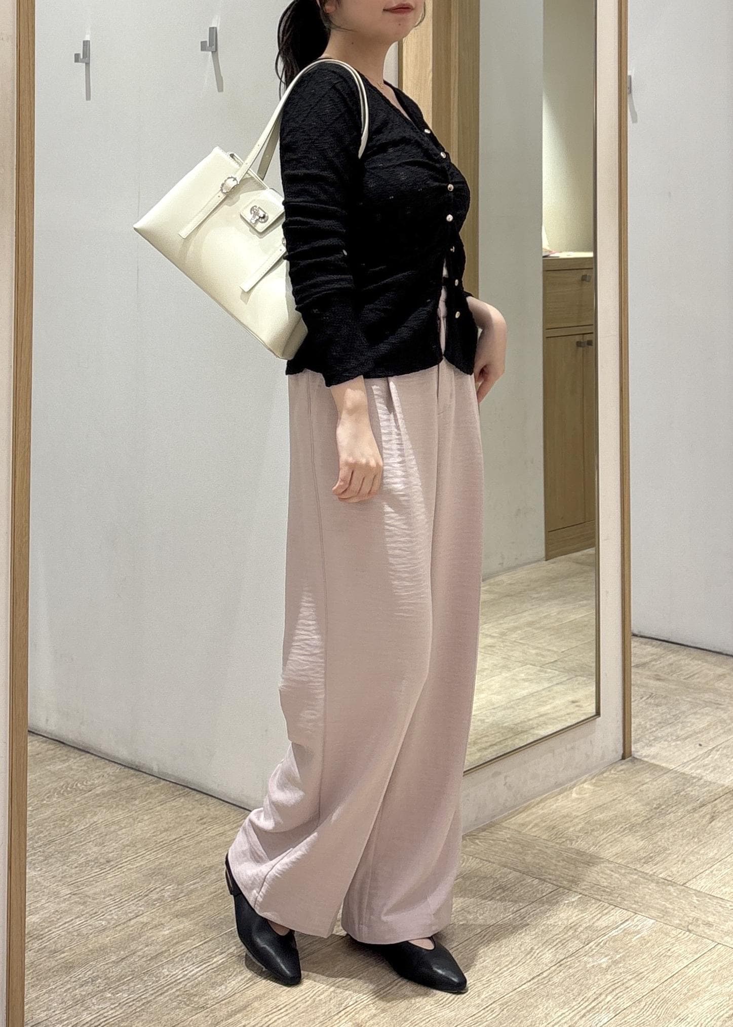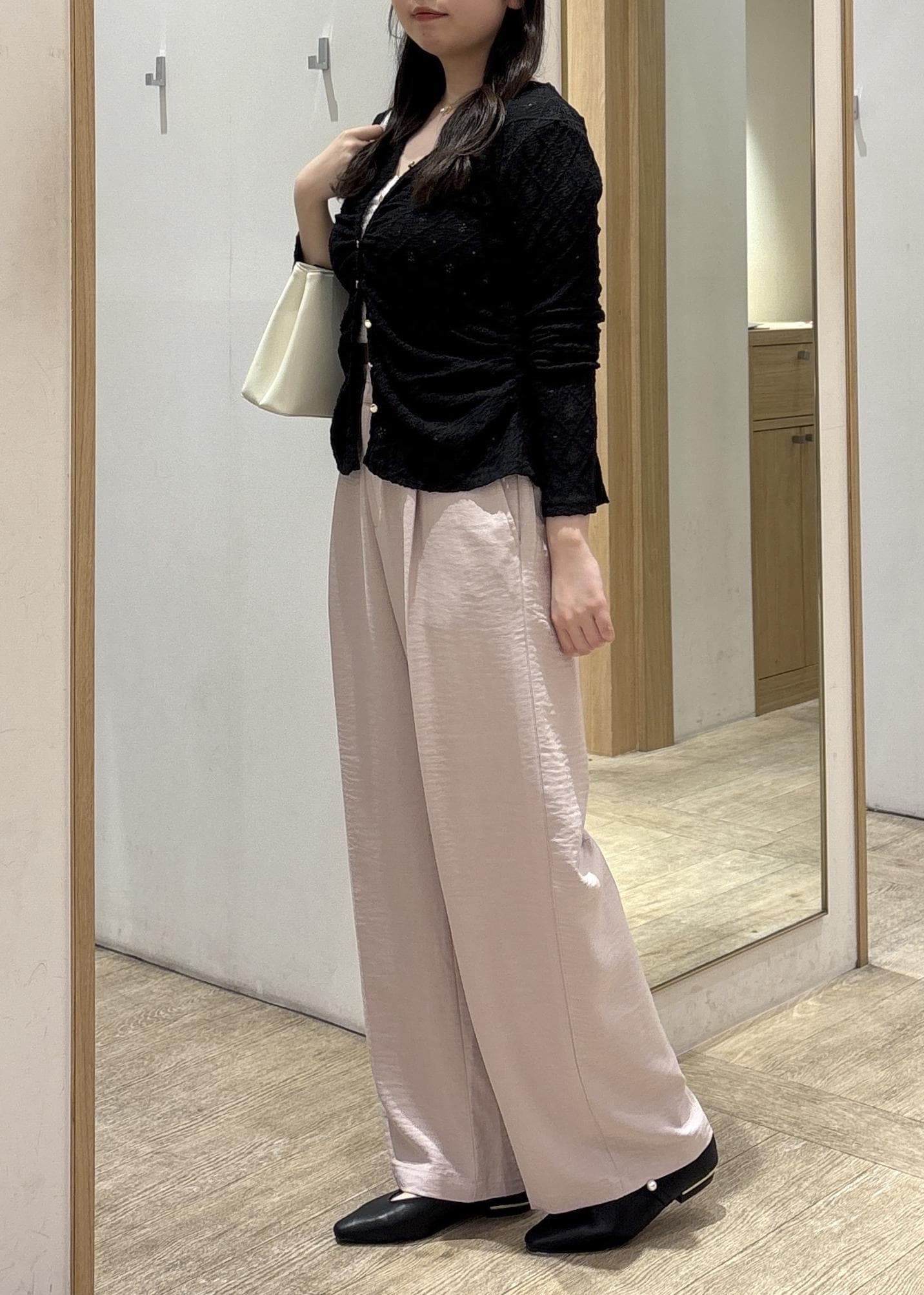 一方でボトムはストンと落ちるワイドラインなので、骨ストさんの得意な“縦ライン”がしっかり出てスタイルアップが叶います。