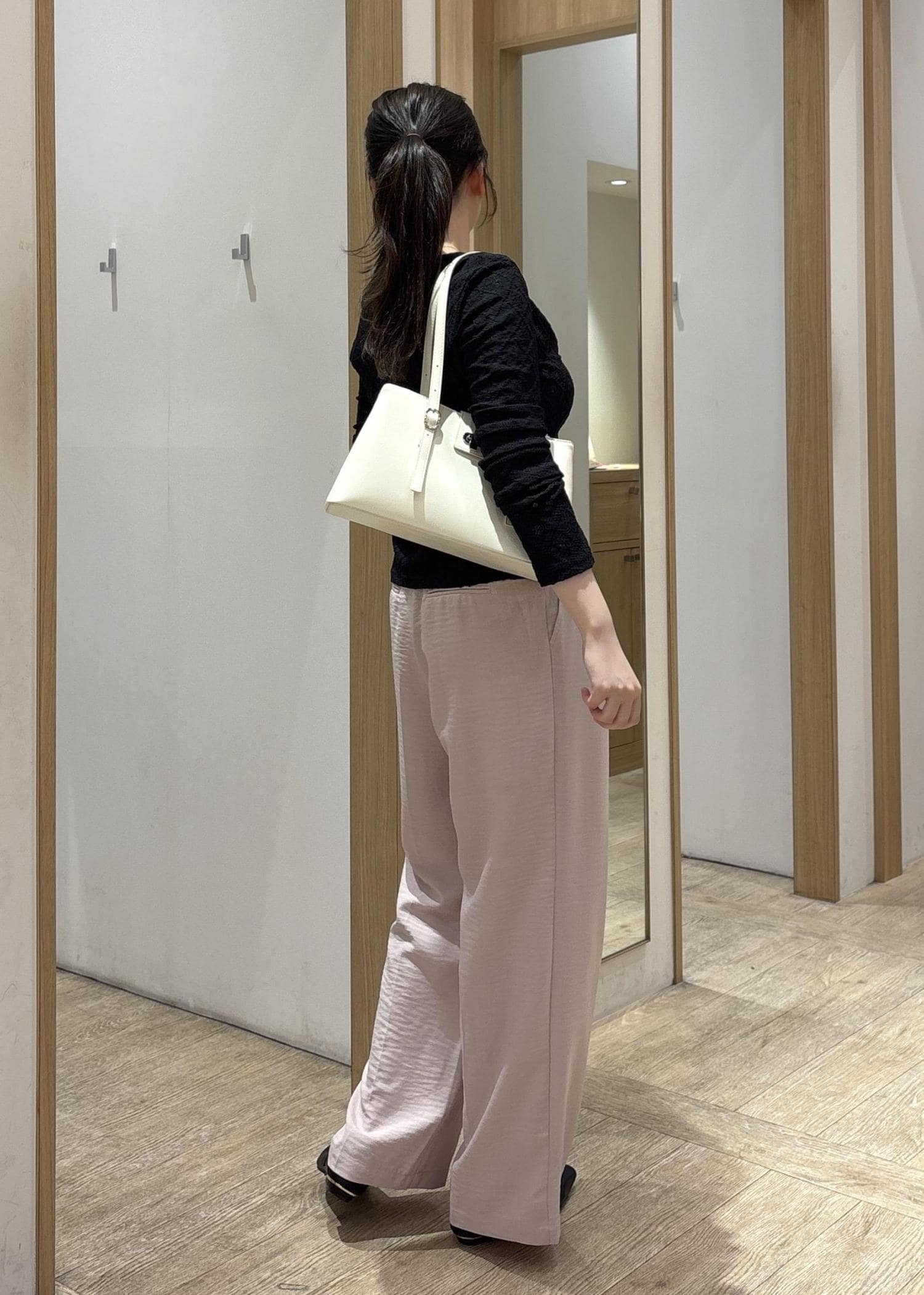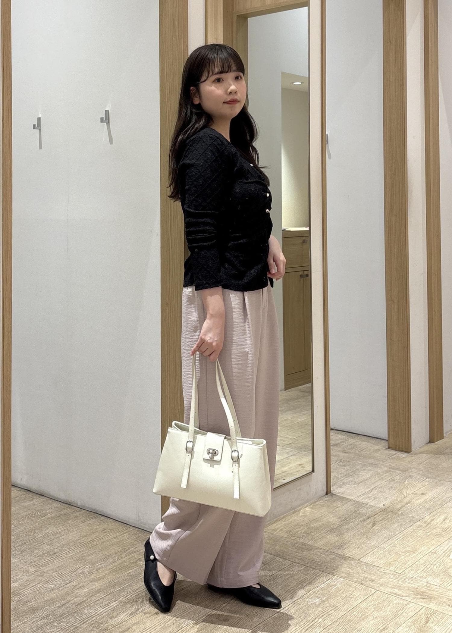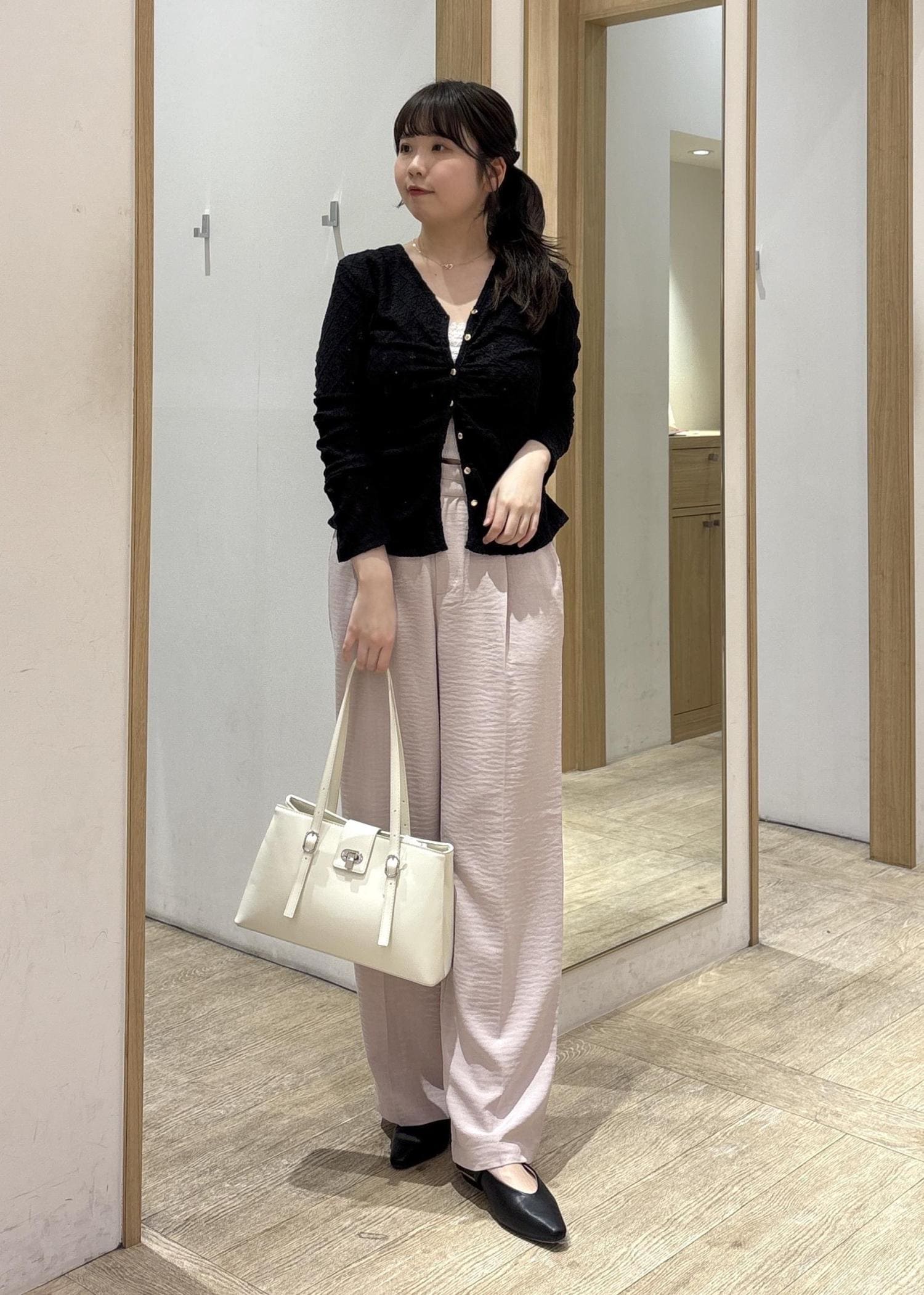 一方でボトムはストンと落ちるワイドラインなので、骨ストさんの得意な“縦ライン”がしっかり出てスタイルアップが叶います。