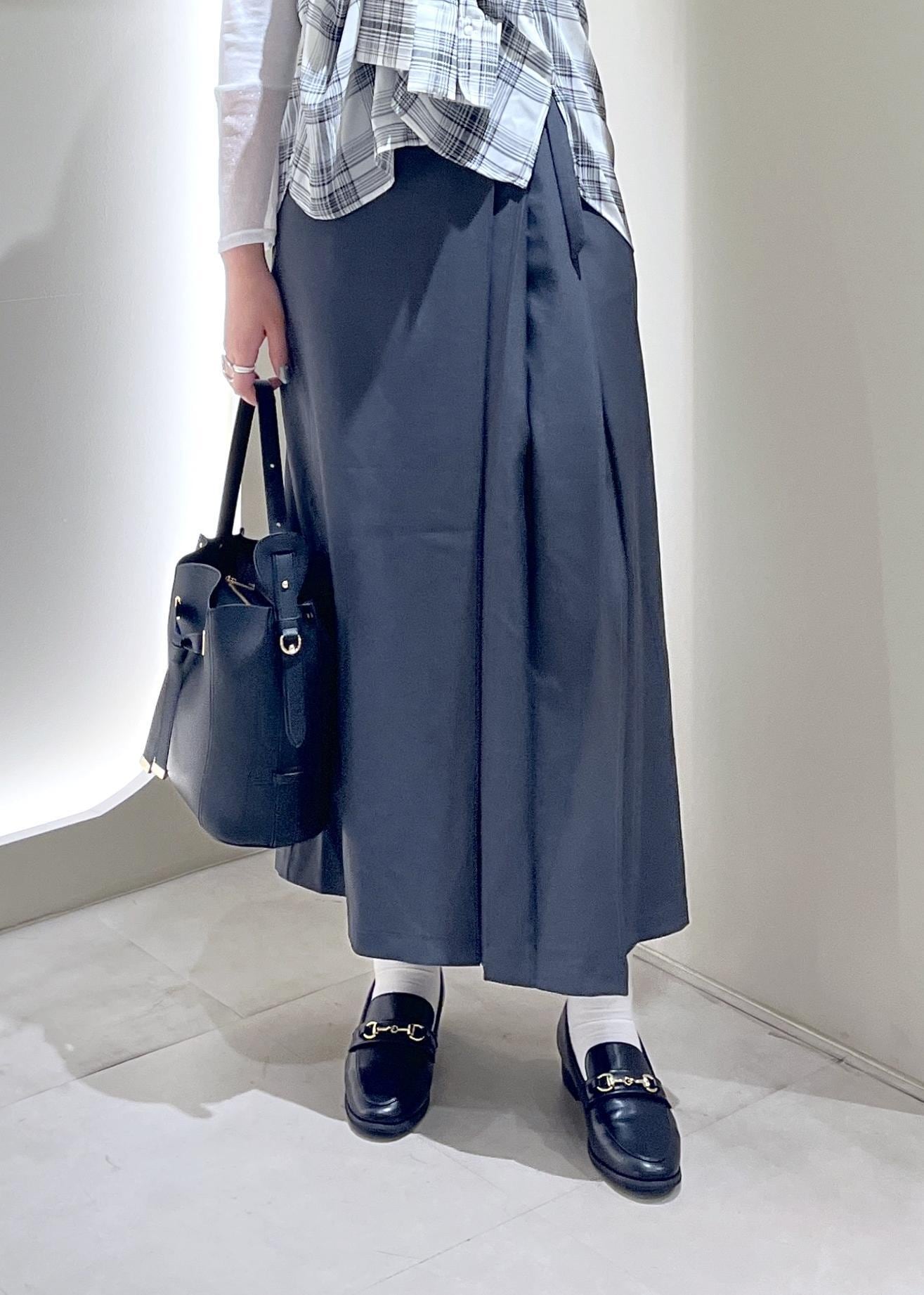 アシンメトリーのプリーツデザインも一癖あってオシャレ見え◎