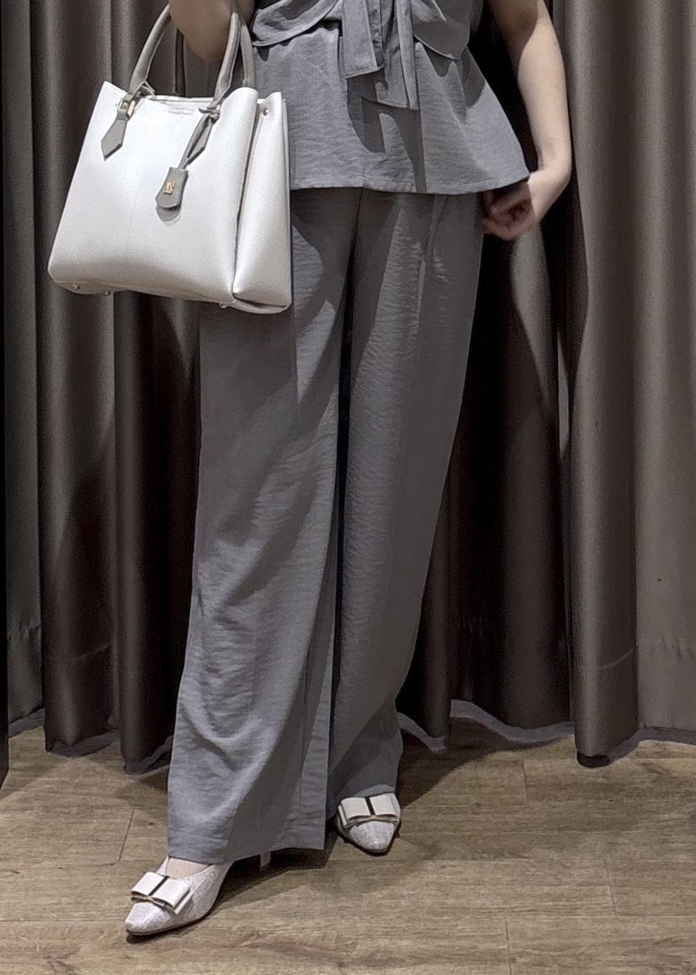 NEW!VIS美easyリネンライクワイドパンツ/イージーケア・接触冷感・セットアップ対応グレー / M¥5,489レビュー153cm、Mサイズ着用でヒールをはいてギリギリ地面につかないくらいの丈感でした!