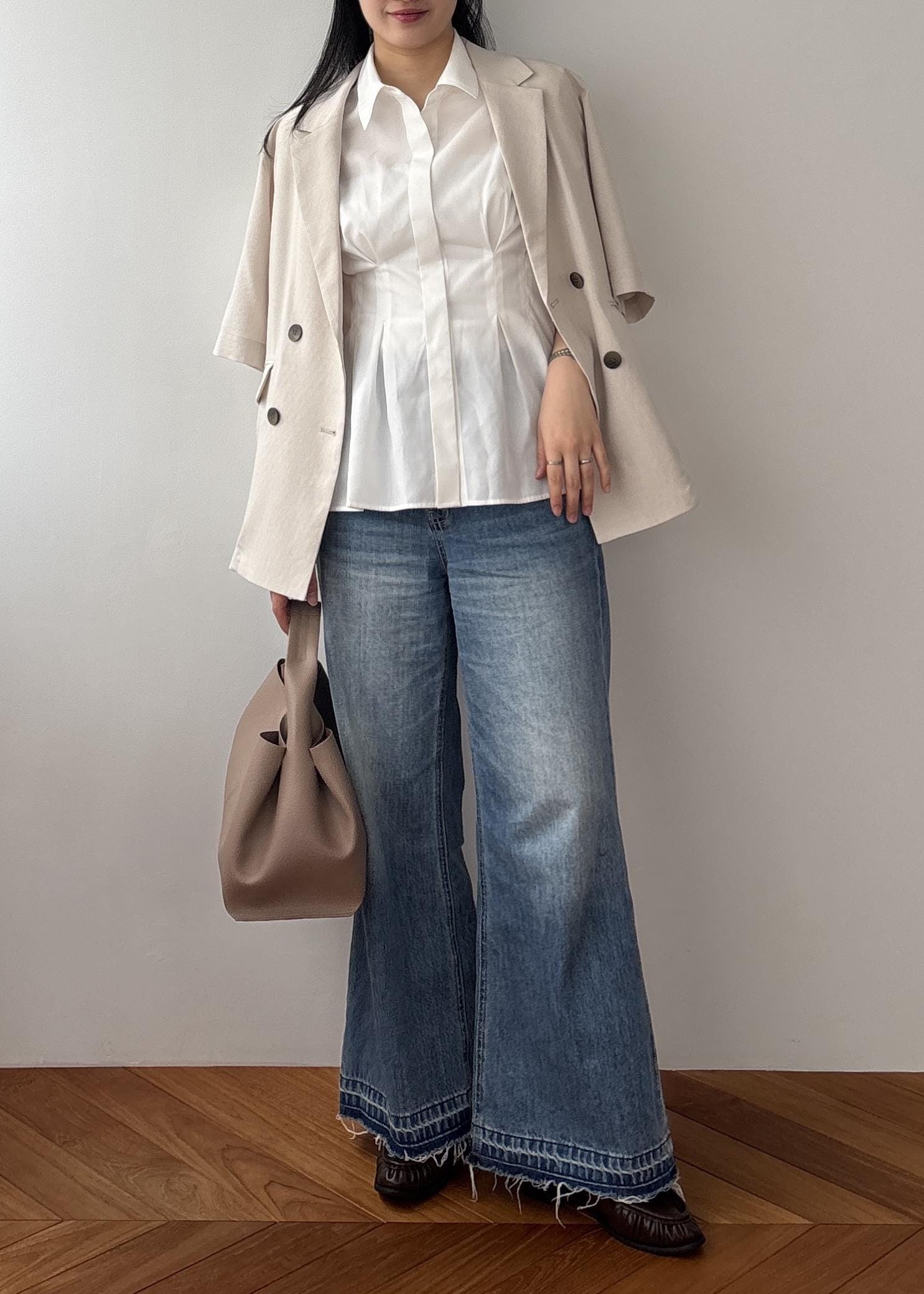 ホワイト着用、透け感があるのでインナー必須です。 -