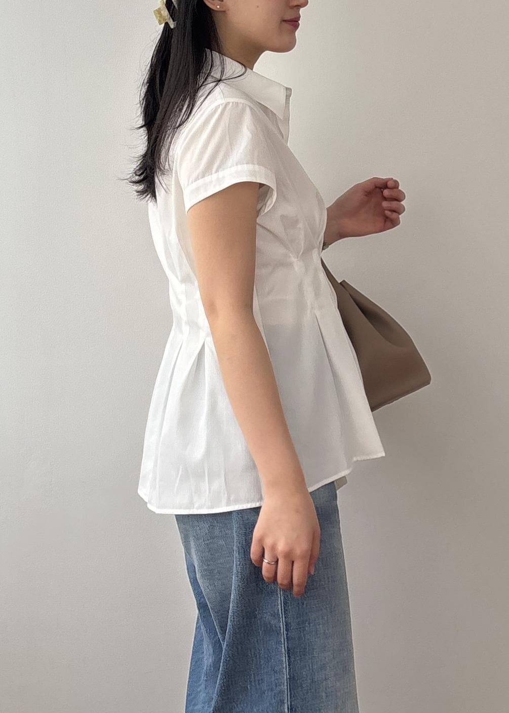 予約VISウエストタックペプラム半袖シャツブラウスホワイト / F¥5,489レビュー165cmで腰がしっかり隠れるくらいの丈感で安心感があります!