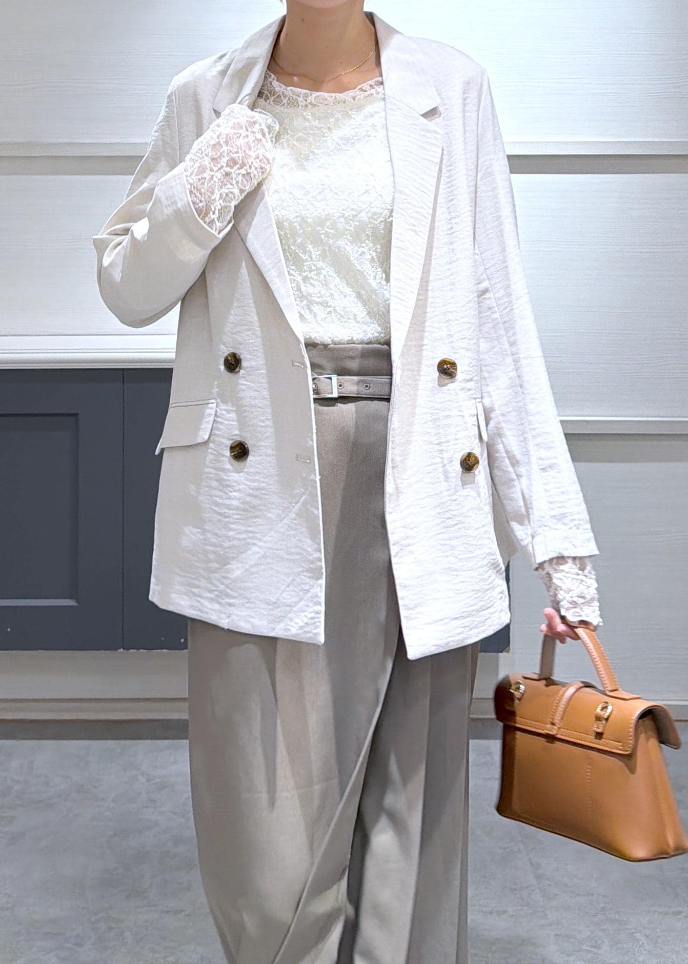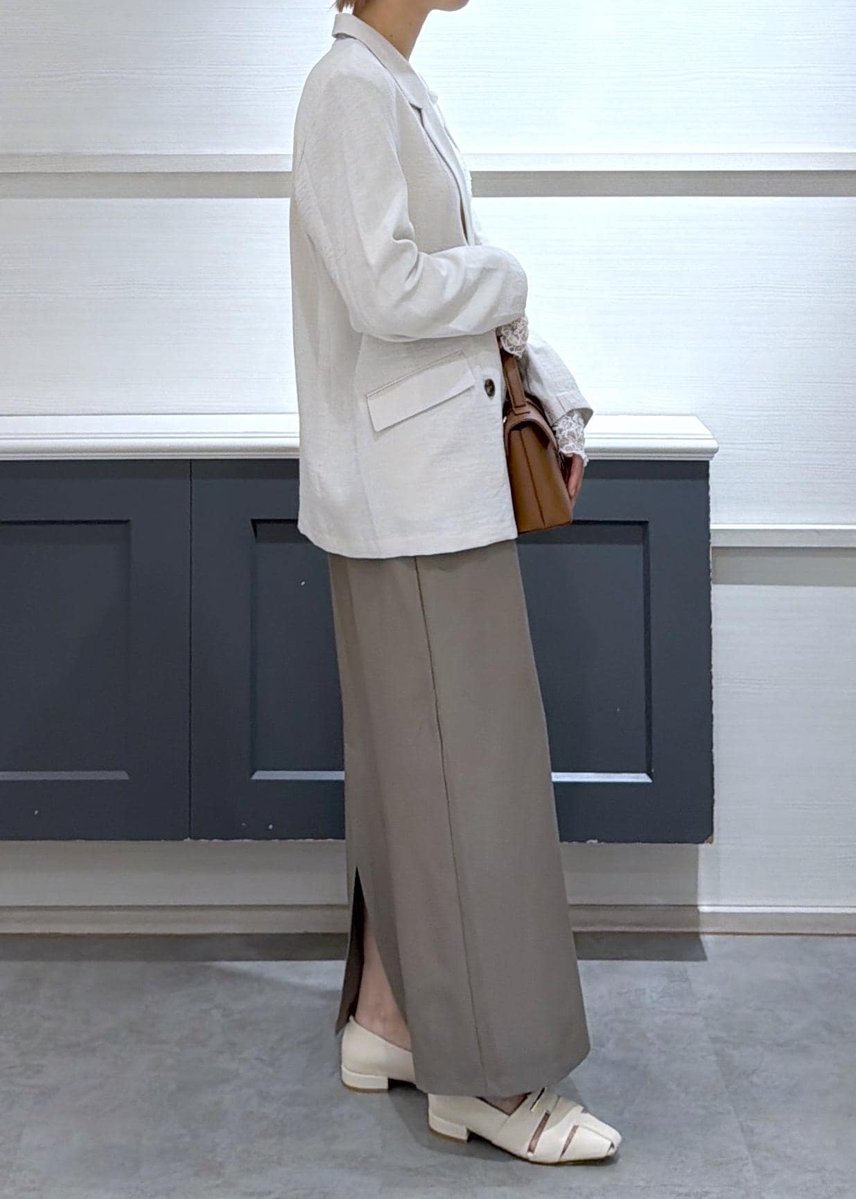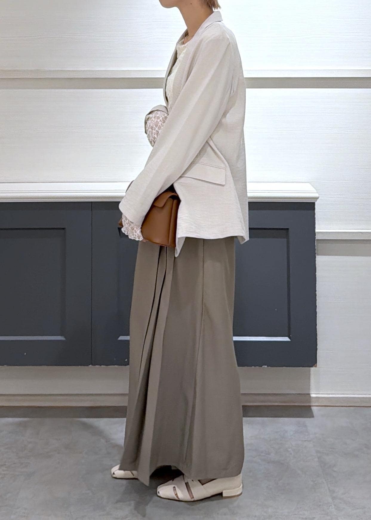 同素材でセットアップ対応もしてるので、キレイめコーデに悩んだらぜひこのシリーズを! -