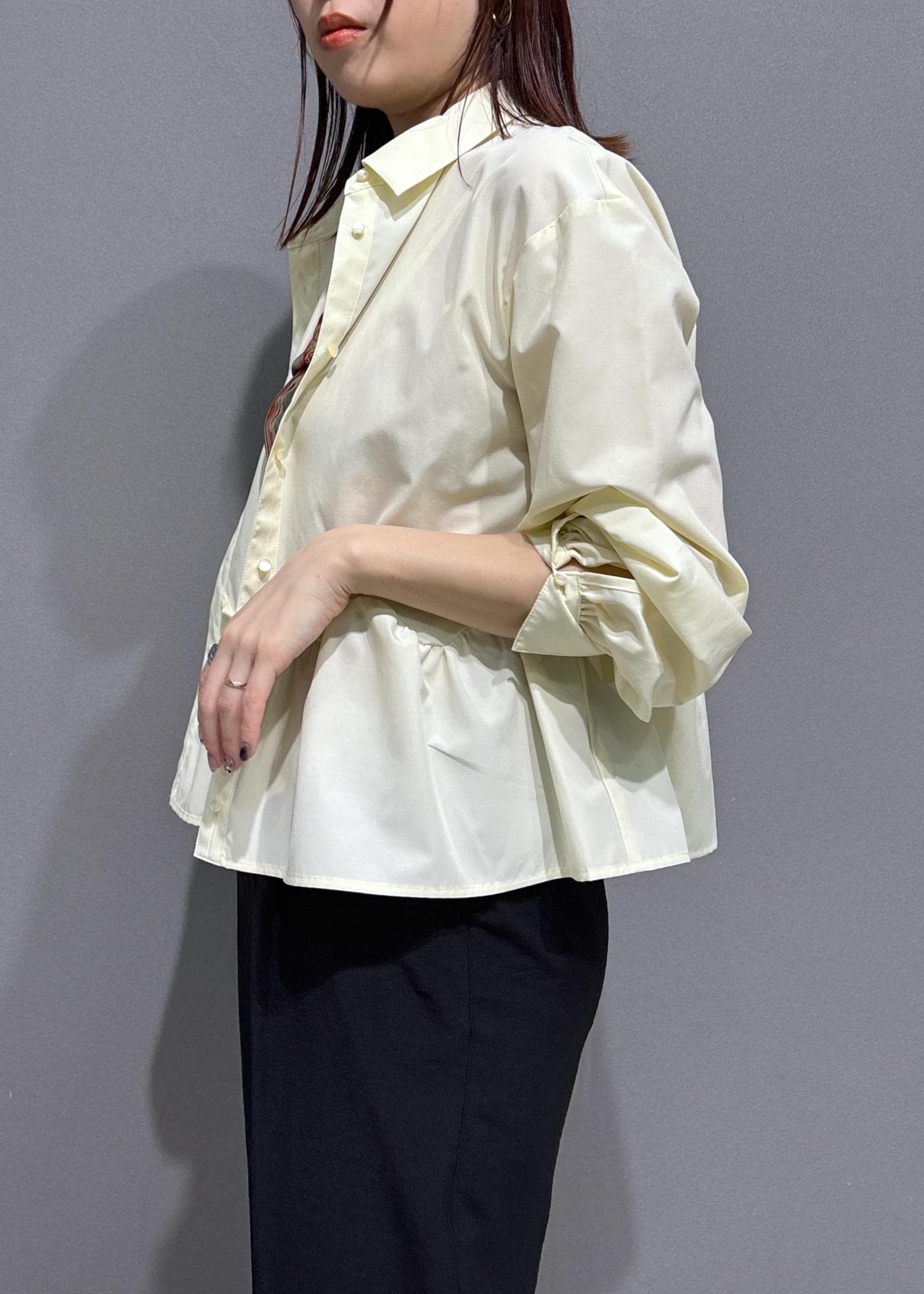 VISウエーブヘムペプラムシャツイエロー / F¥6,589レビュー柔らかくて薄手のシャツです。