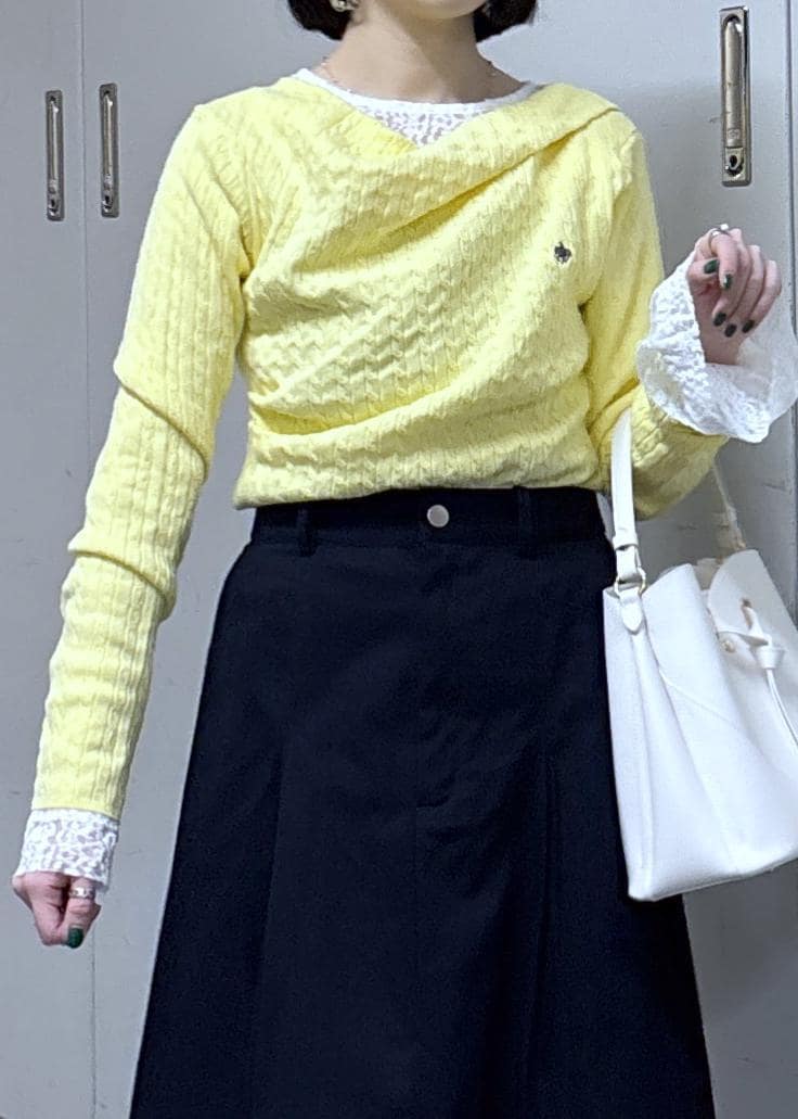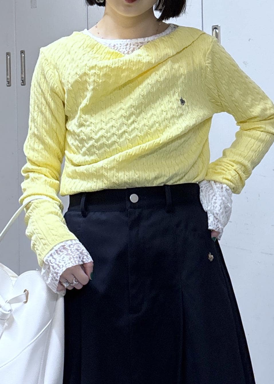 VIS【POLO BCS】VIS別注ケーブルドレープトップスイエロー / F¥6,930レビューボートネックにもワンオフショルにもなる首元広めデザイン!