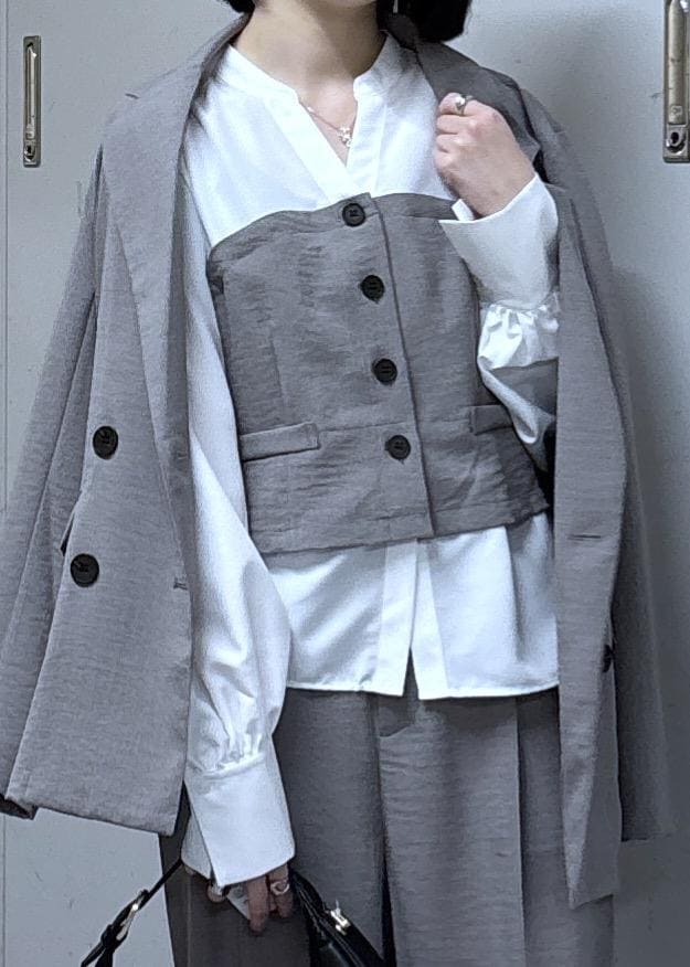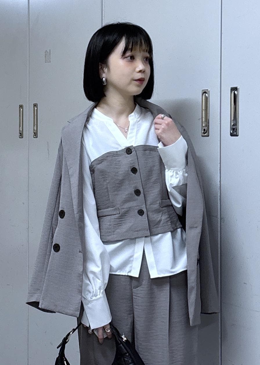 VIS美easy前開きビスチェドッキングシャツ/イージーケア・接触冷感・セットアップ対応グレー / F¥5,929レビュービスチェがくっついているようなデザインなので、1枚でオシャレが完成!✨