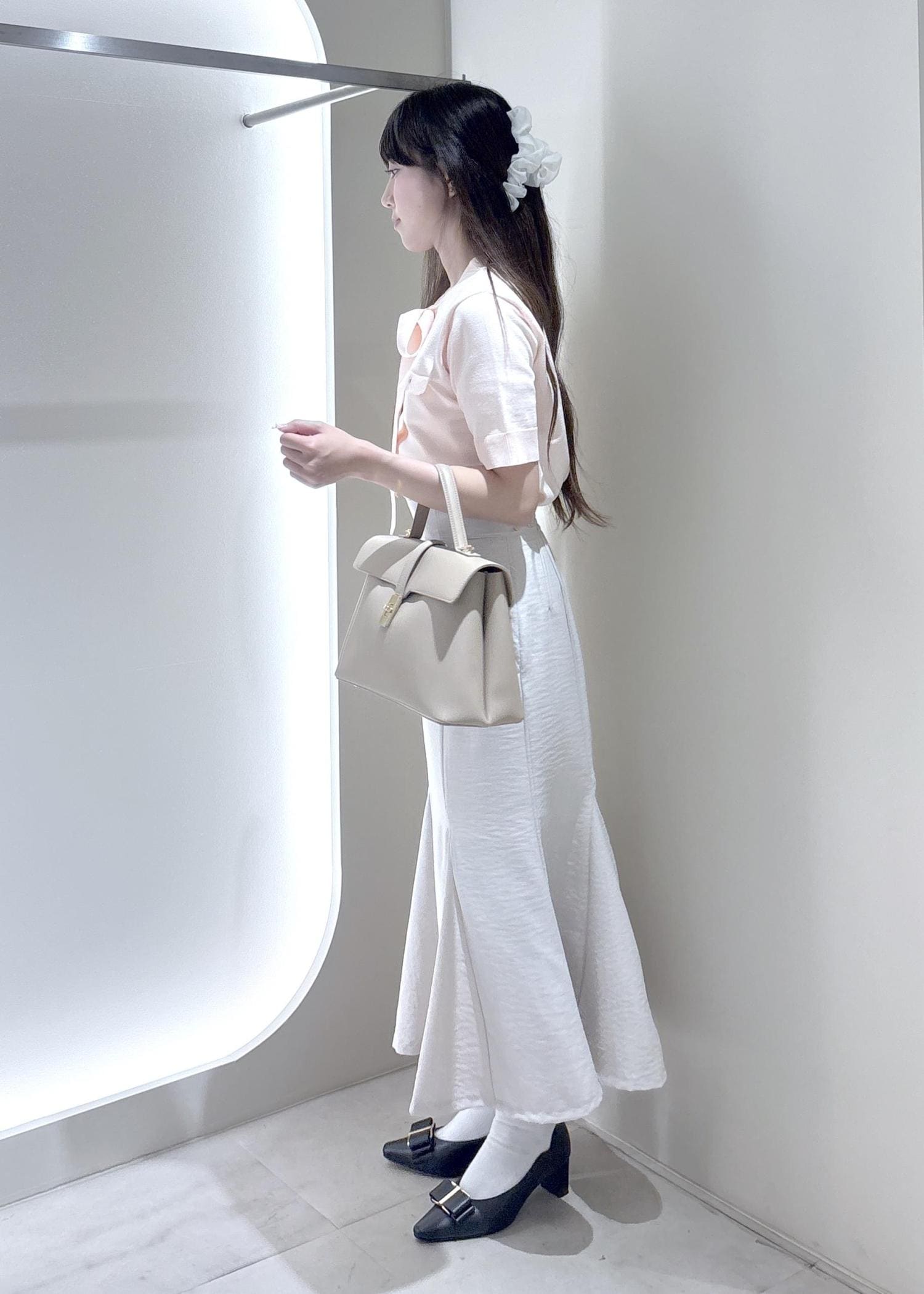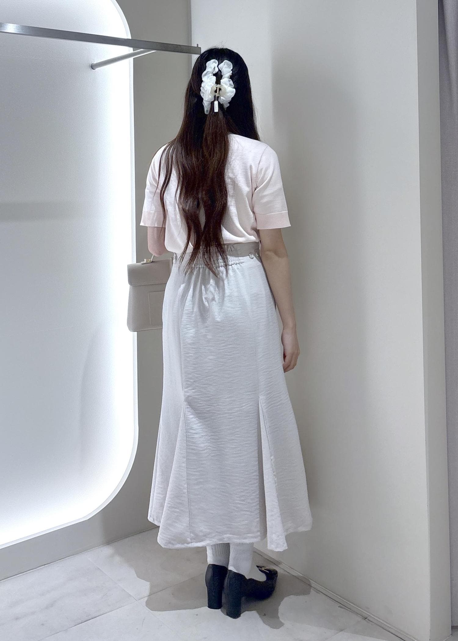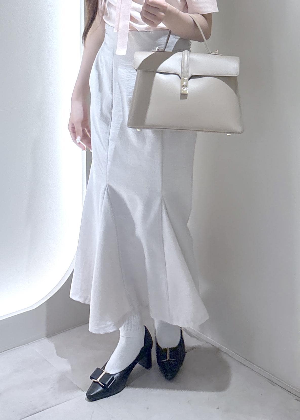 マーメイドスカートなので形がスッキリしていてシンプルなデザインなのでトップスとも合わせやすく着回しがしやすいです。 -