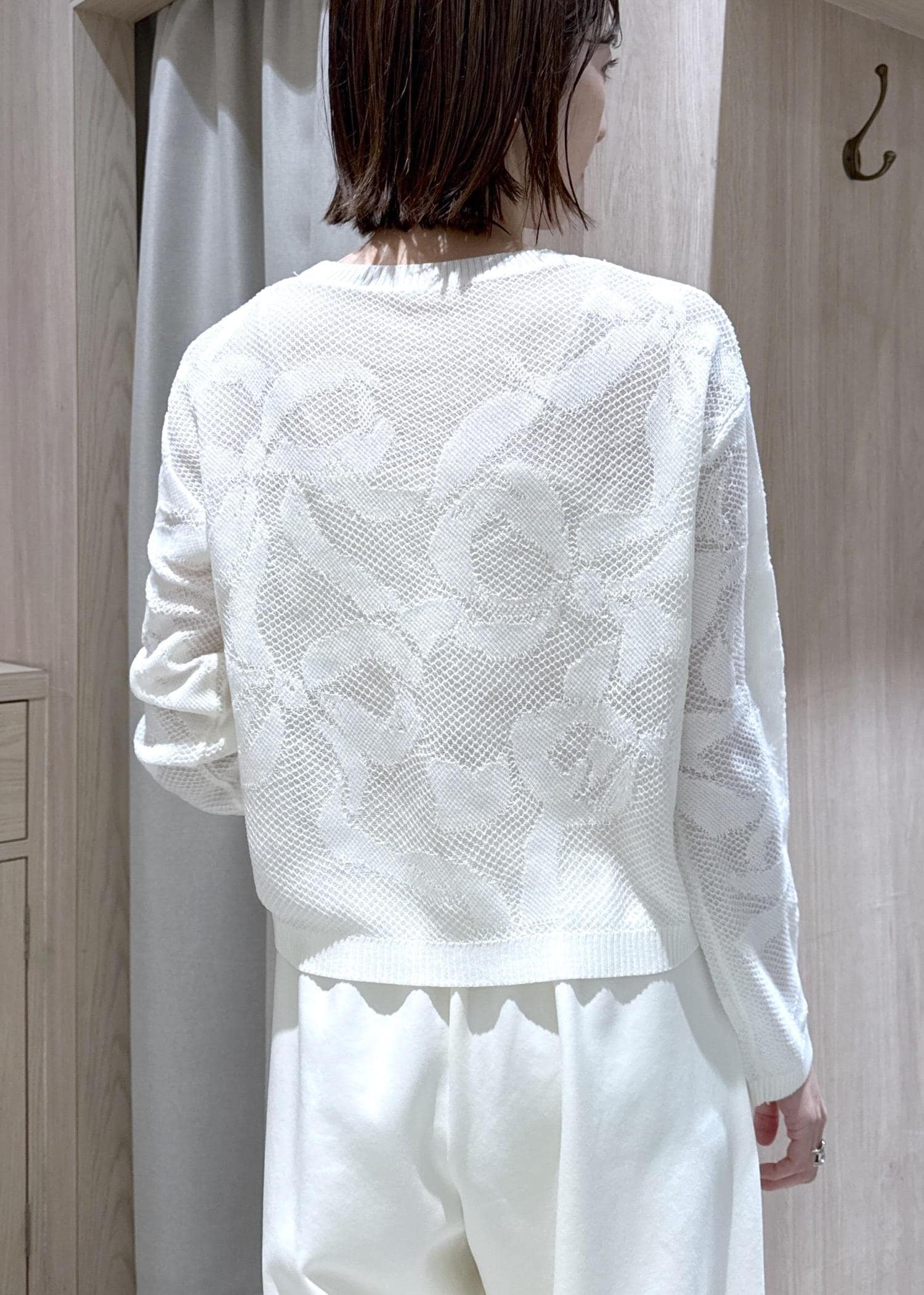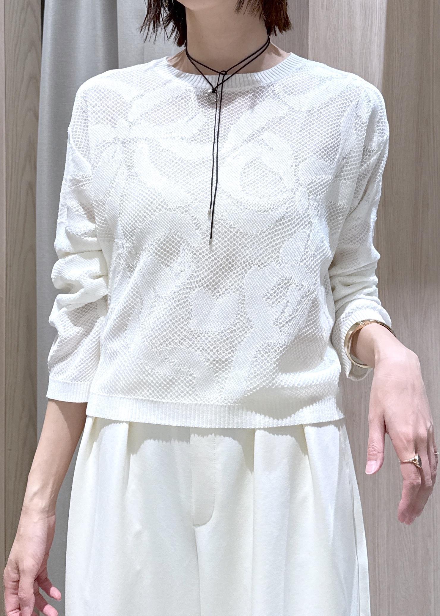 VISメッシュジャカードニットプルオーバー/イージーケアオフホワイト / F¥5,489レビュー身長166センチで腰下のコンパクトな丈感でした。