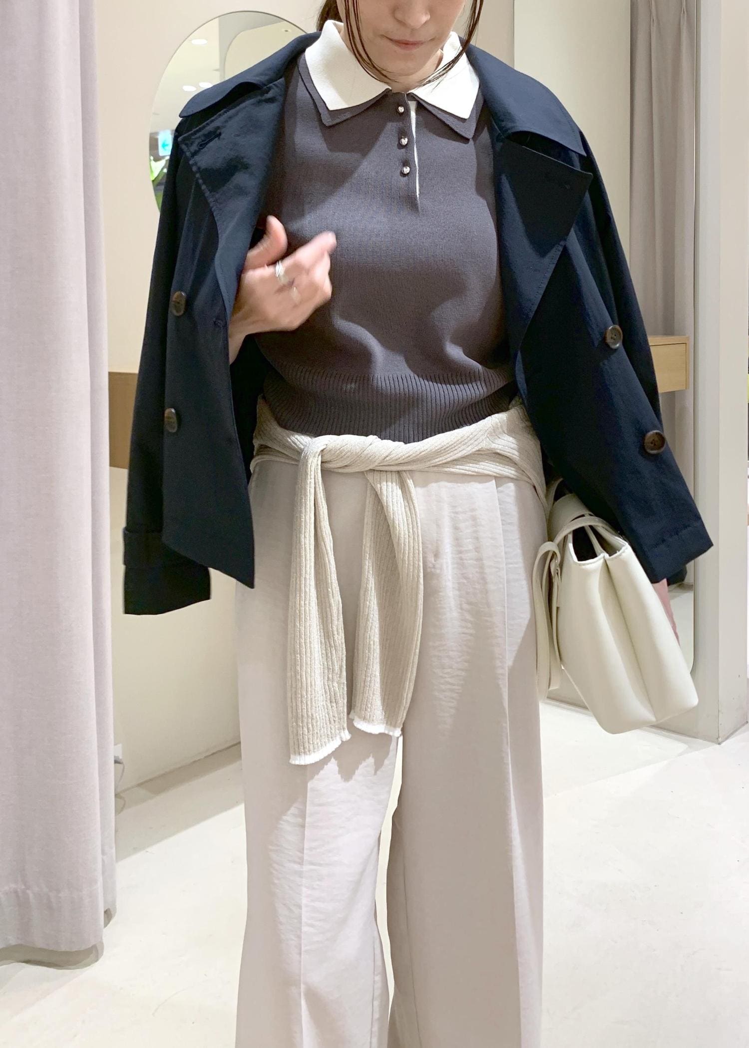 従来のトレンチほどの堅苦しさがないので、カジュアルコーデもしやすいです。