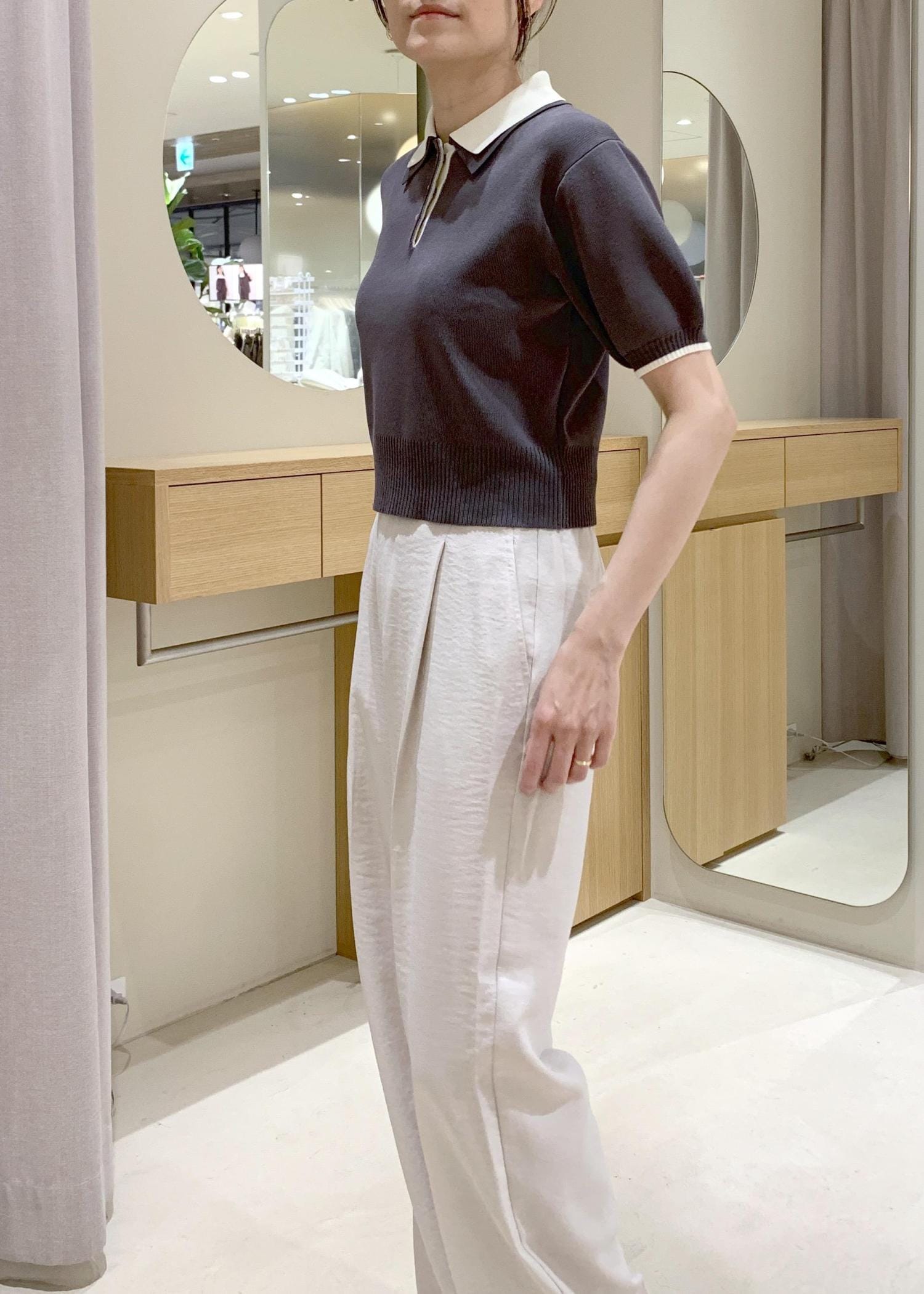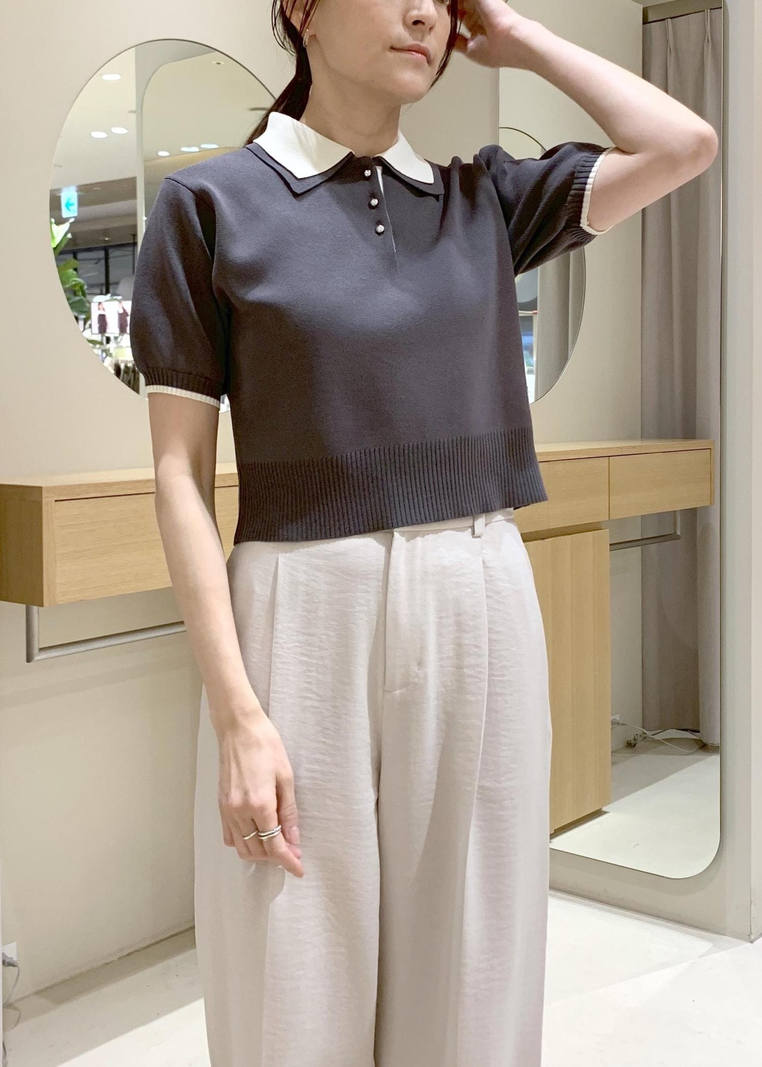 ダブルカラー半袖ポロニットトップス/イージーケア・WEB限定カラー