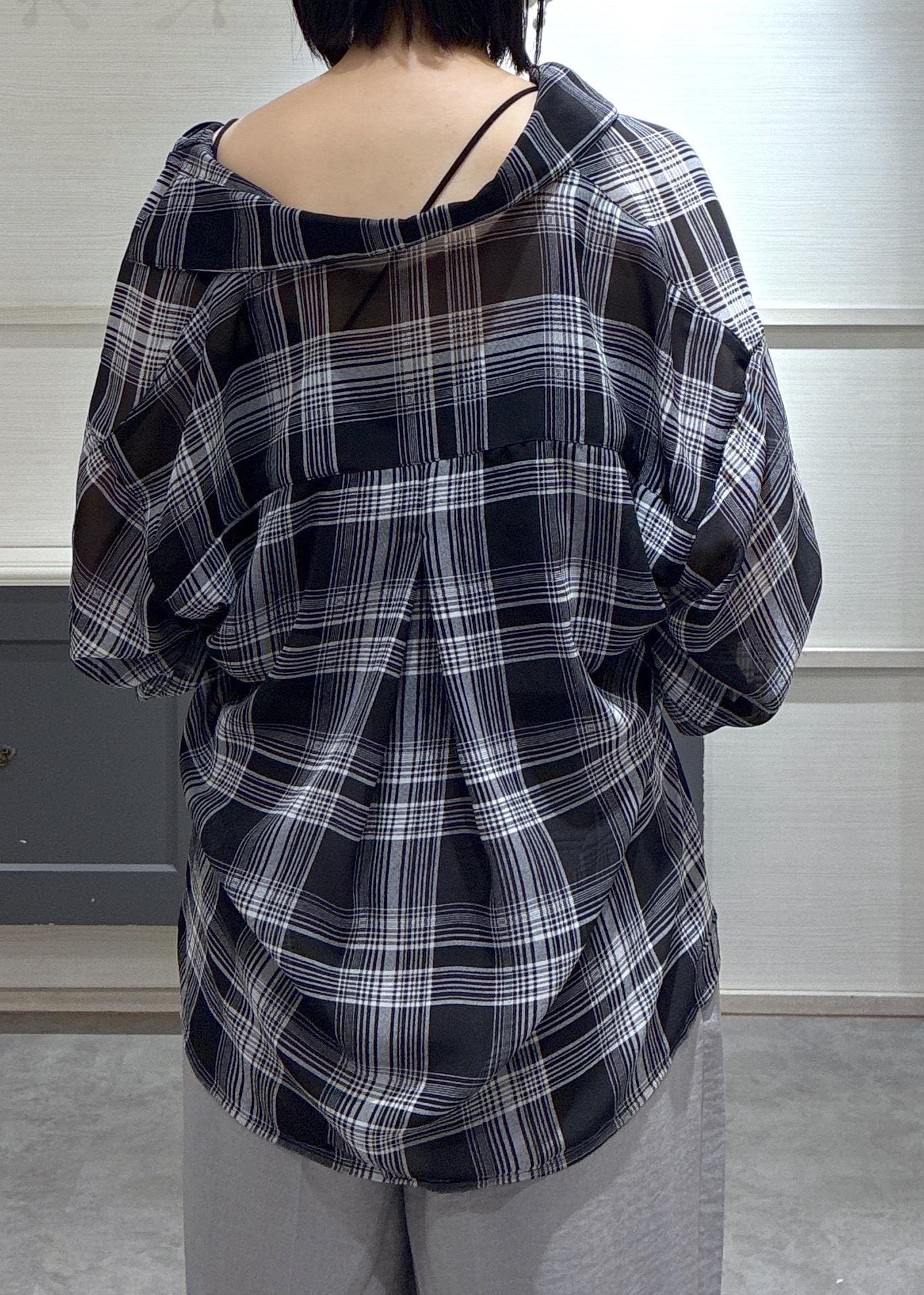 VISチェック&シアーオーバーシャツブラック系 / F¥5,489レビュー身長168センチでヒップが隠れる着丈です!