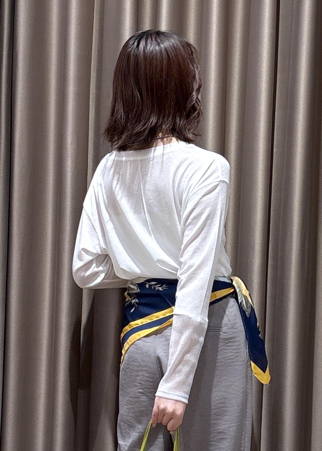 春に向けたシアーロンT×スカーフアレンジコーデ