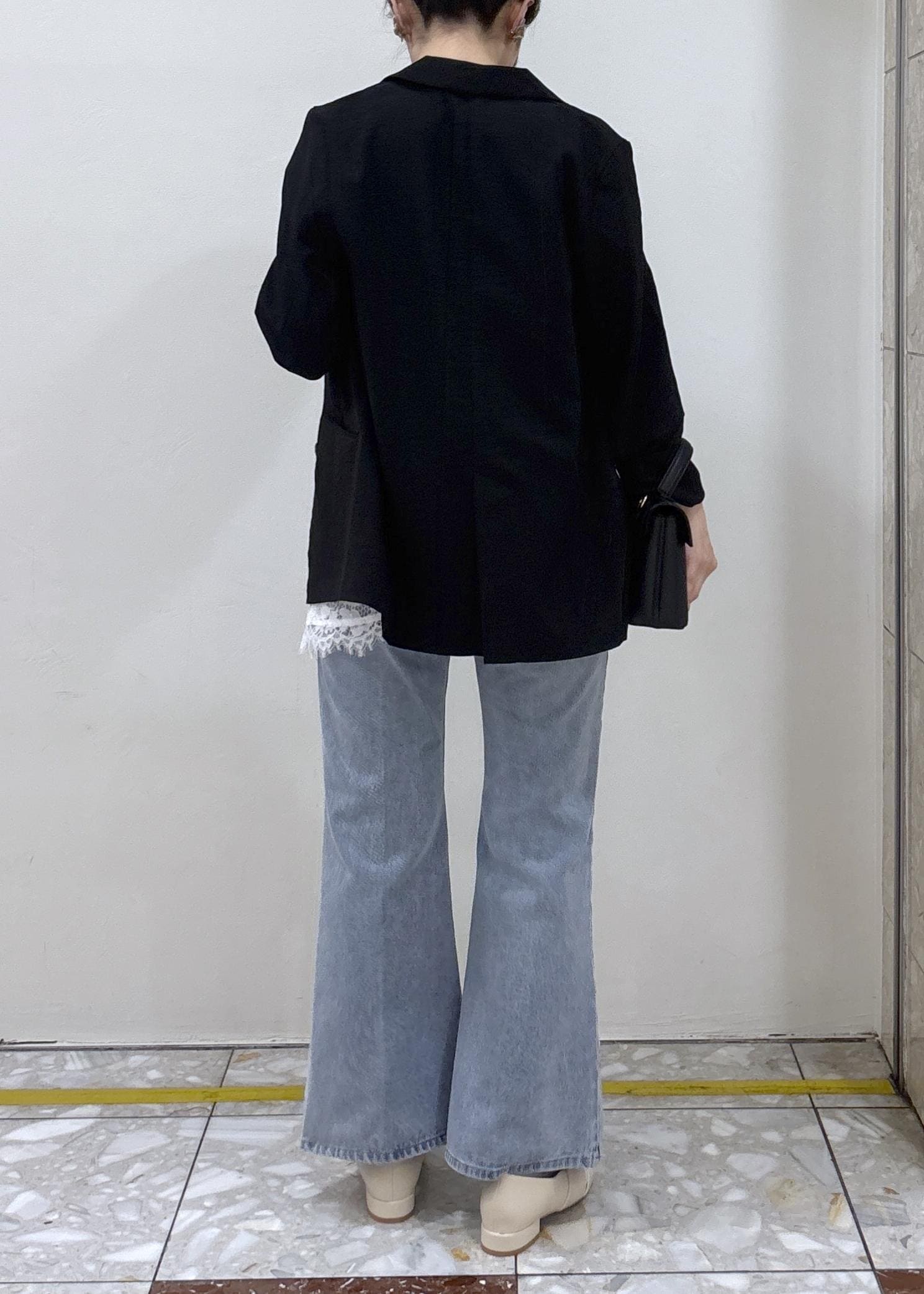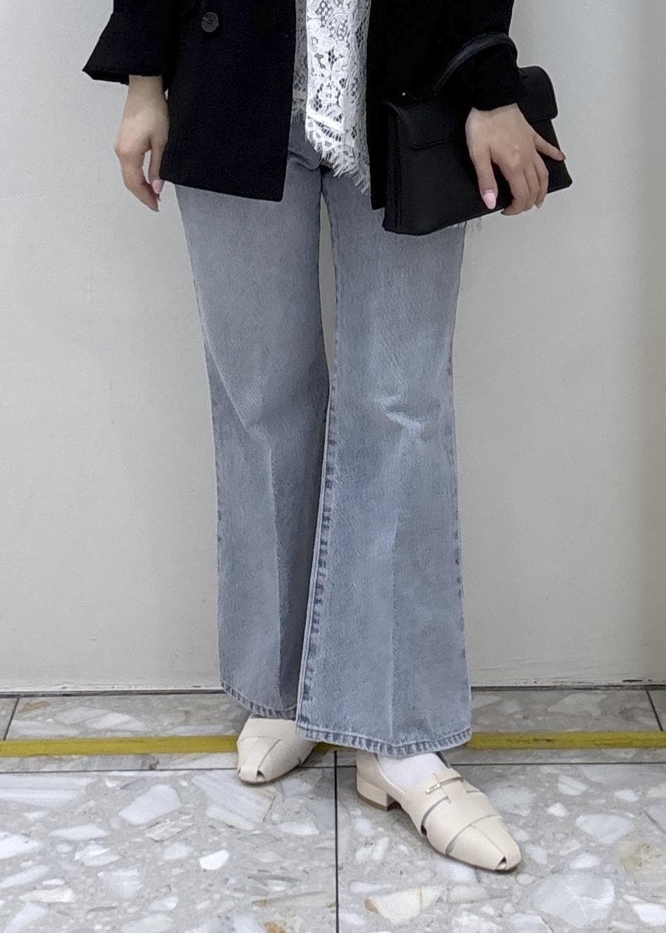 VISカラーフレアデニムパンツサックス / S¥8,899レビュー158cmSサイズ着用。足首がちょうど隠れる丈感でした!フレアのラインはスッキリ綺麗に出るのと、ストレッチも効いた柔らかい生地感なのがとても履きやすかったです◎