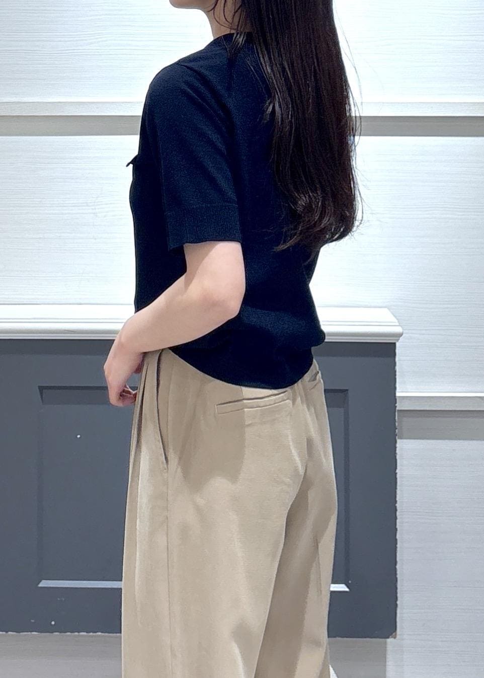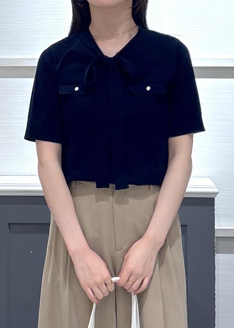 VISリボン付き半袖ニットプルオーバー/イージーケアネイビー / F¥5,489レビュー156cmで腰がしっかり隠れる丈感です。