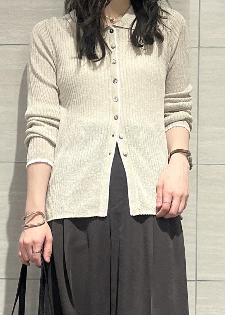 ポロ襟配色シアーリブカーディガン/イージーケア