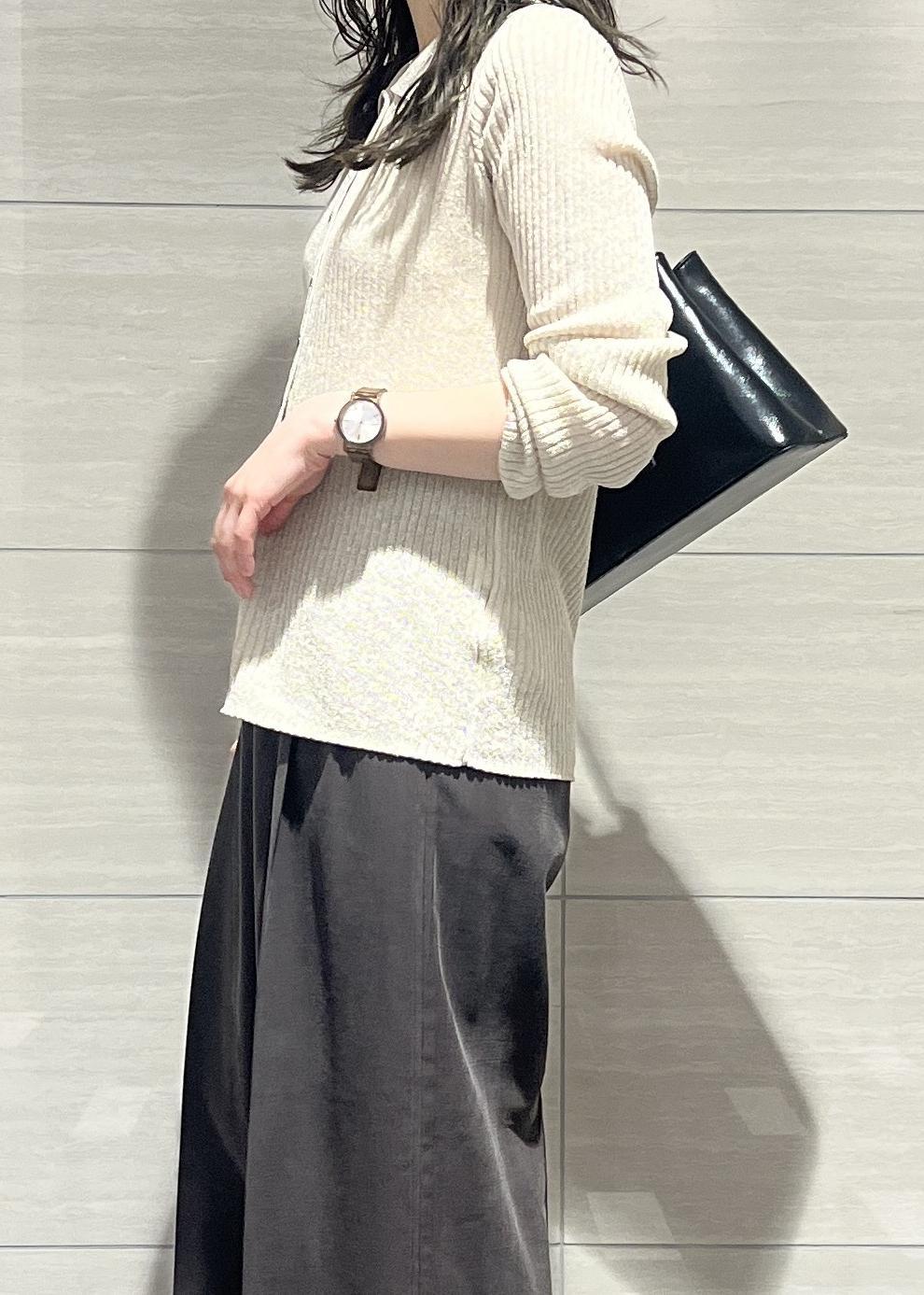 シアー素材のトップスを使った春のベーシックスタイル✨