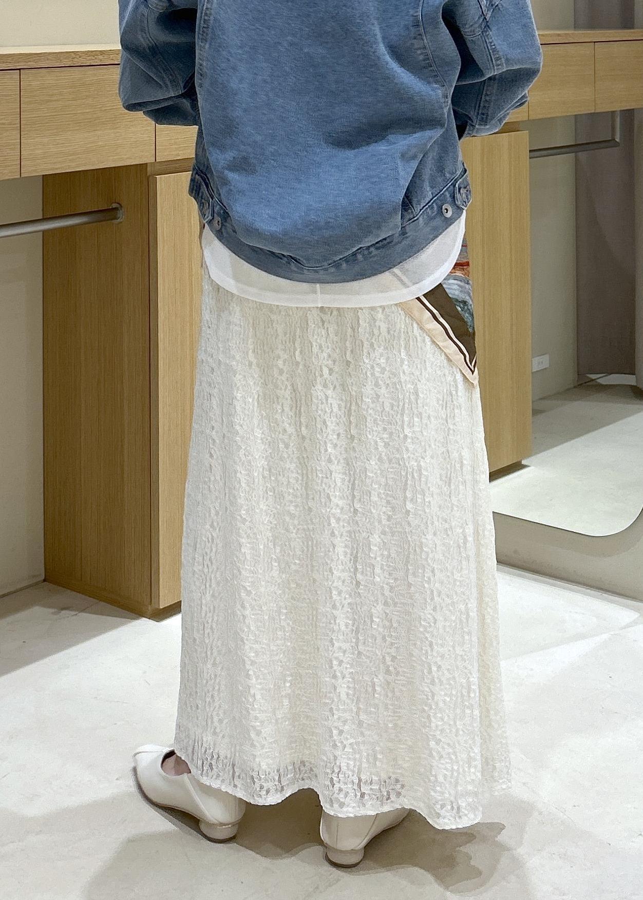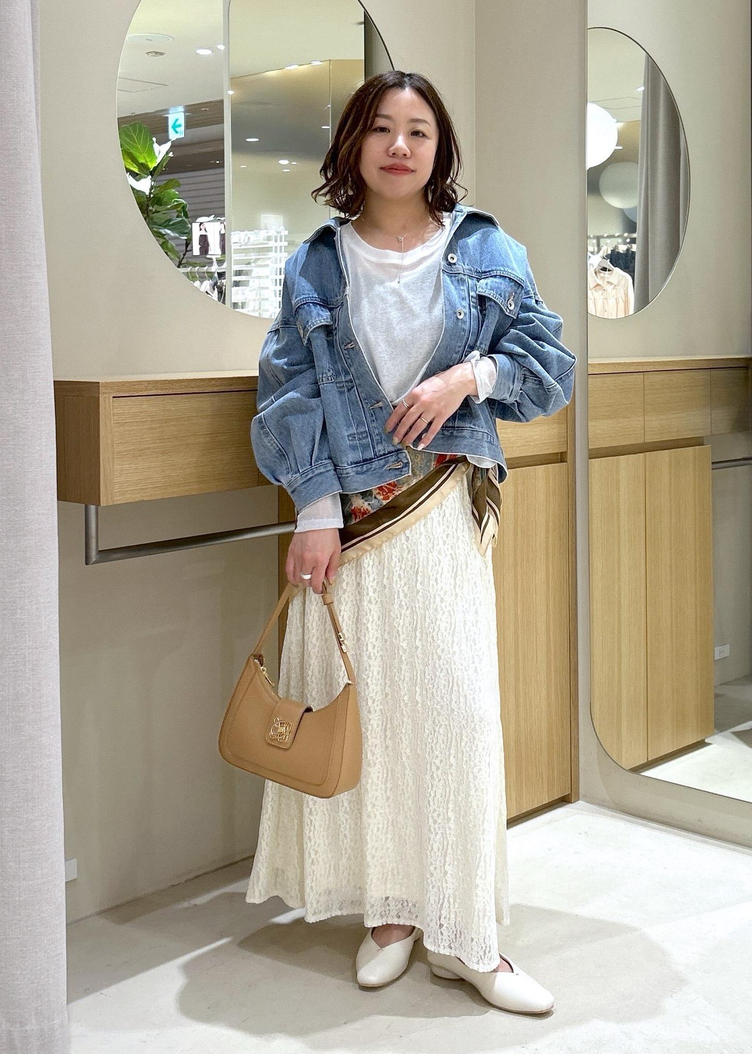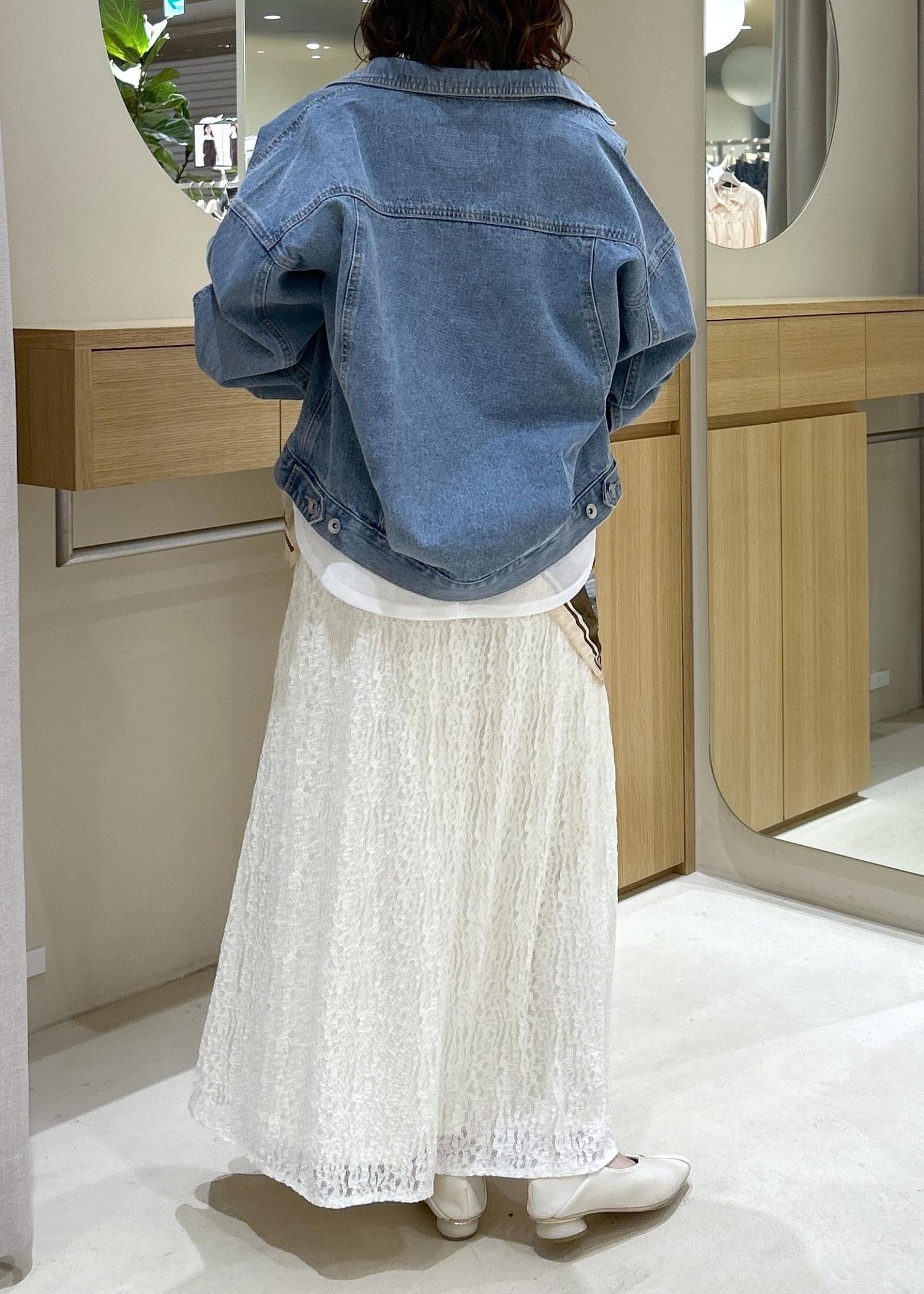トレンドのレースアイテムにデニムのカジュアルさをプラスしたお出かけスタイル。