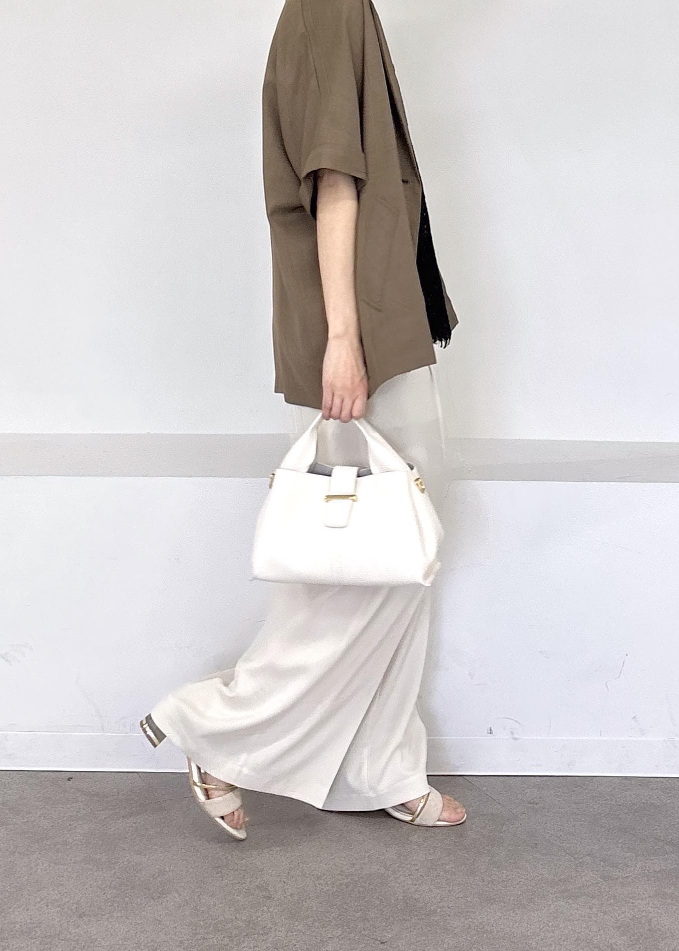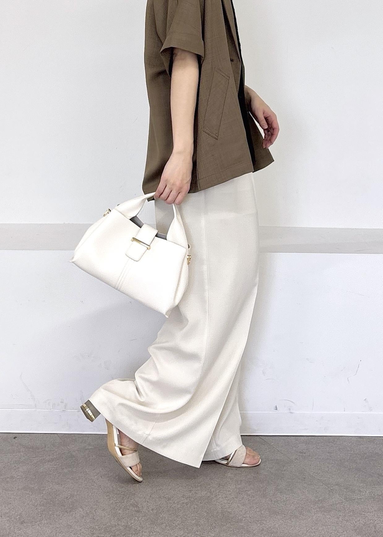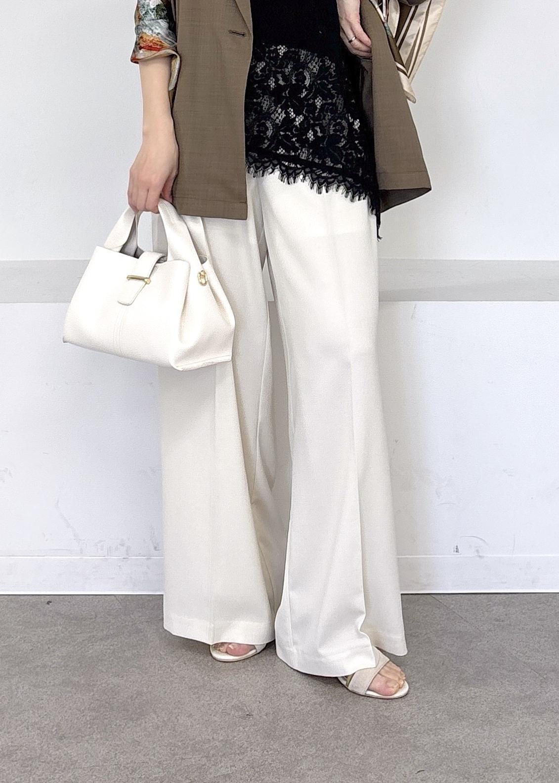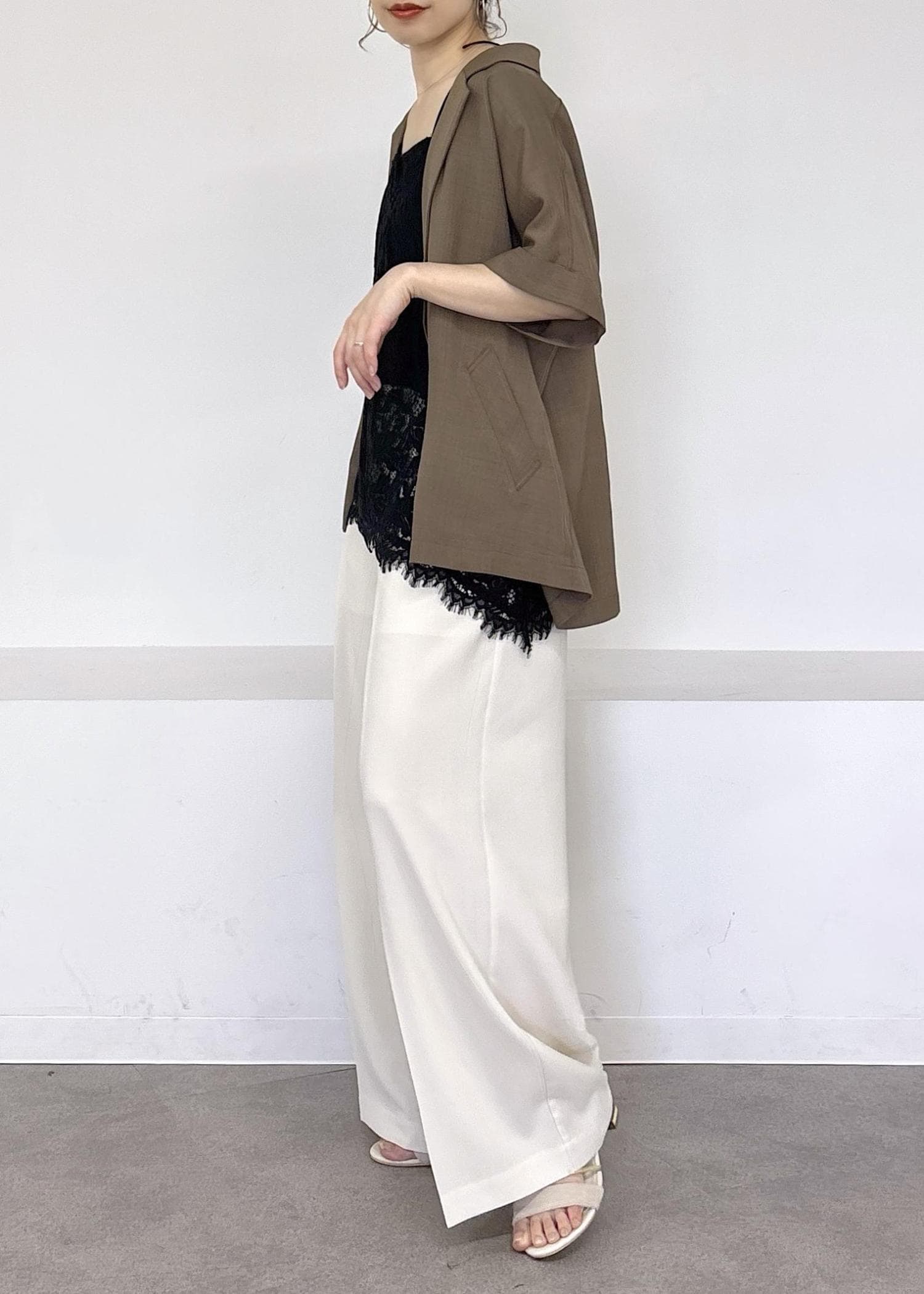 さらっと羽織れるAiryシリーズのジャケット、パンツは今日みたいな汗ばむ気温に最適♪締め付けすぎないシルエットなのでとても着やすく、レーストップスをあわせることで今年らしいトレンドスタイルに◎春夏オススメの大人カジュアルコーデ。