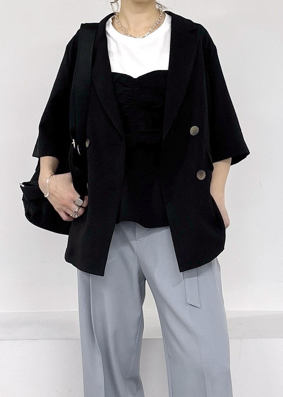 さらっと軽くて様になるハーフスリーブジャケット♪UVケア、接触冷感、吸水発汗など嬉しい可能がたくさんある、夏まで使える優秀ジャケットです◎袖口もゆったりとしていて、シングルボタンでシンプルに合わせやすいデザインもポイント。全体的にゆったりめ、着丈はお尻が隠れる長さでした。