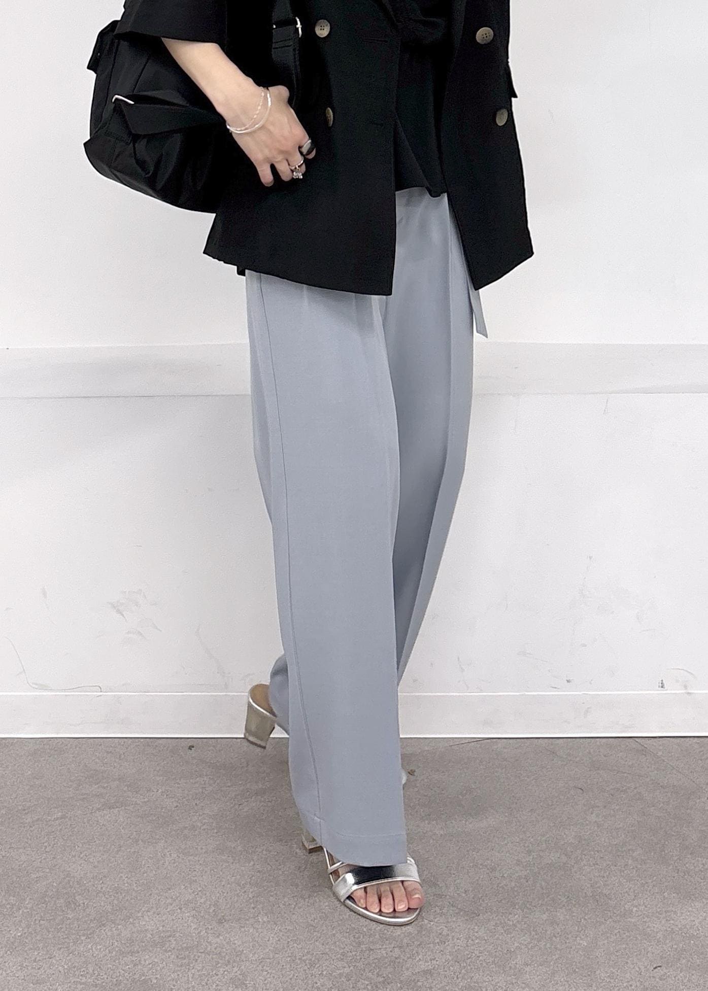 ベルトディティールタックワイドパンツ/イージーケア・接触冷感