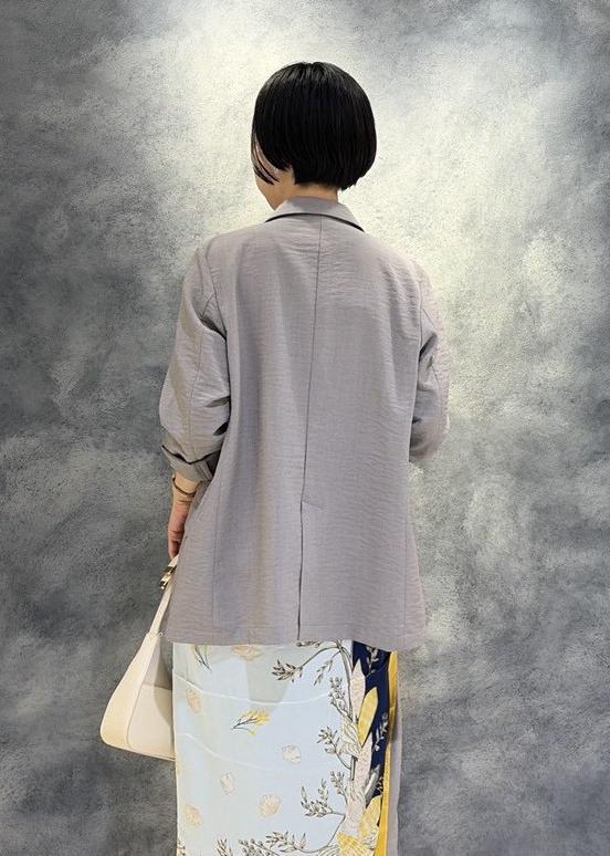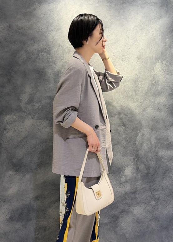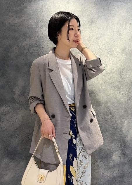 ややオーバーサイズのシルエットですが、大き過ぎず、肩周りも柔らかなラインが出るので、肩幅が狭めな方にもオススメです。 -