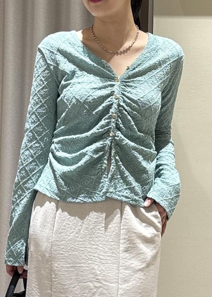 ボディラインを拾いすぎないサイズ感+デコルテすっきり見えるVネックで、肩幅広めなタイプでもフレーム感目立ちづらかったです◎