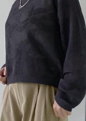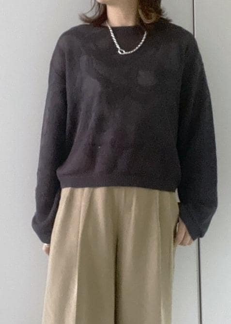 VISメッシュジャカードニットプルオーバー/イージーケアチャコール / F¥5,489レビュー程よい透け感と地柄模様がリボンでかわいいです。身幅もゆったりしてるのと丈も腰までありボトムを選ばないです。