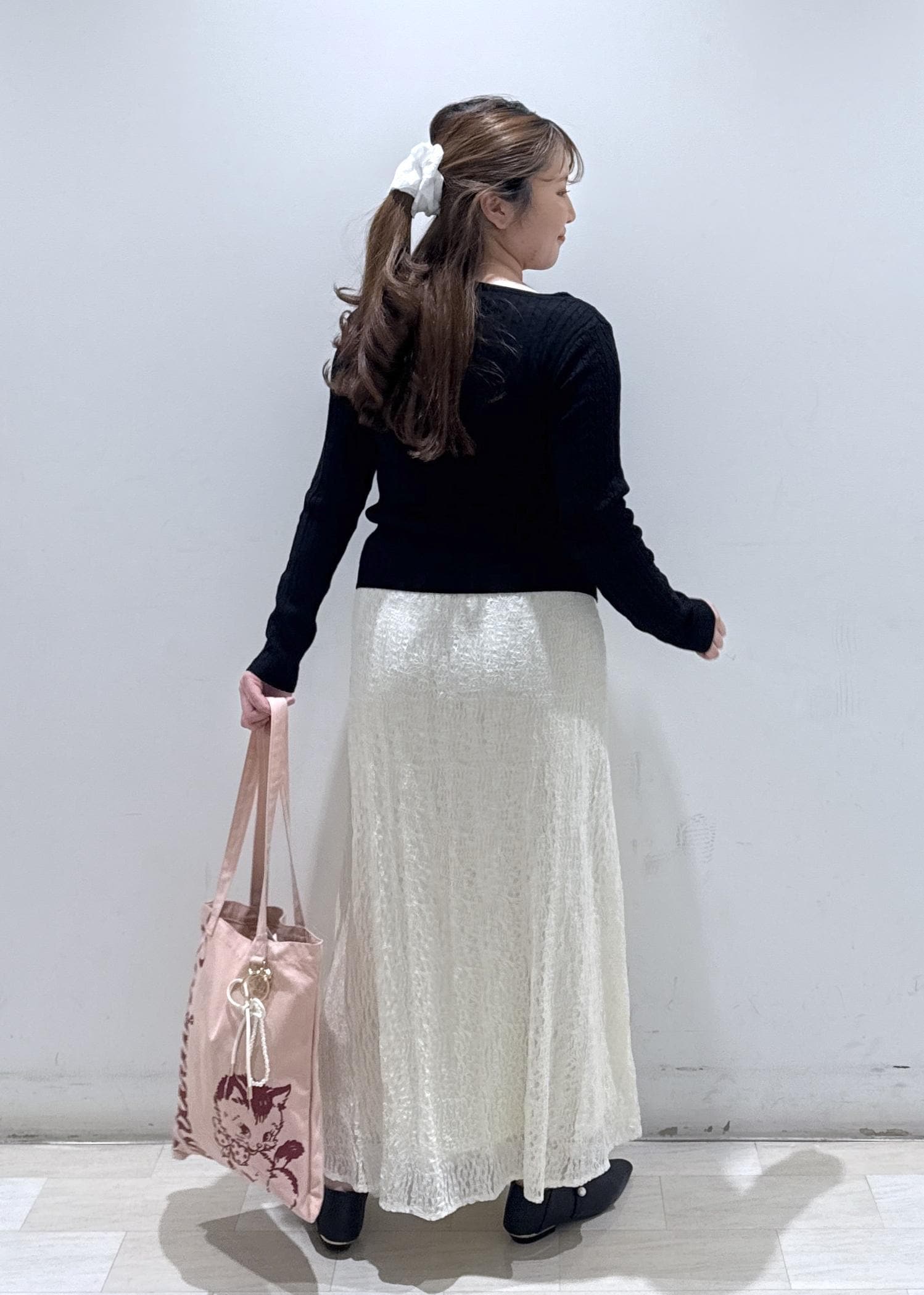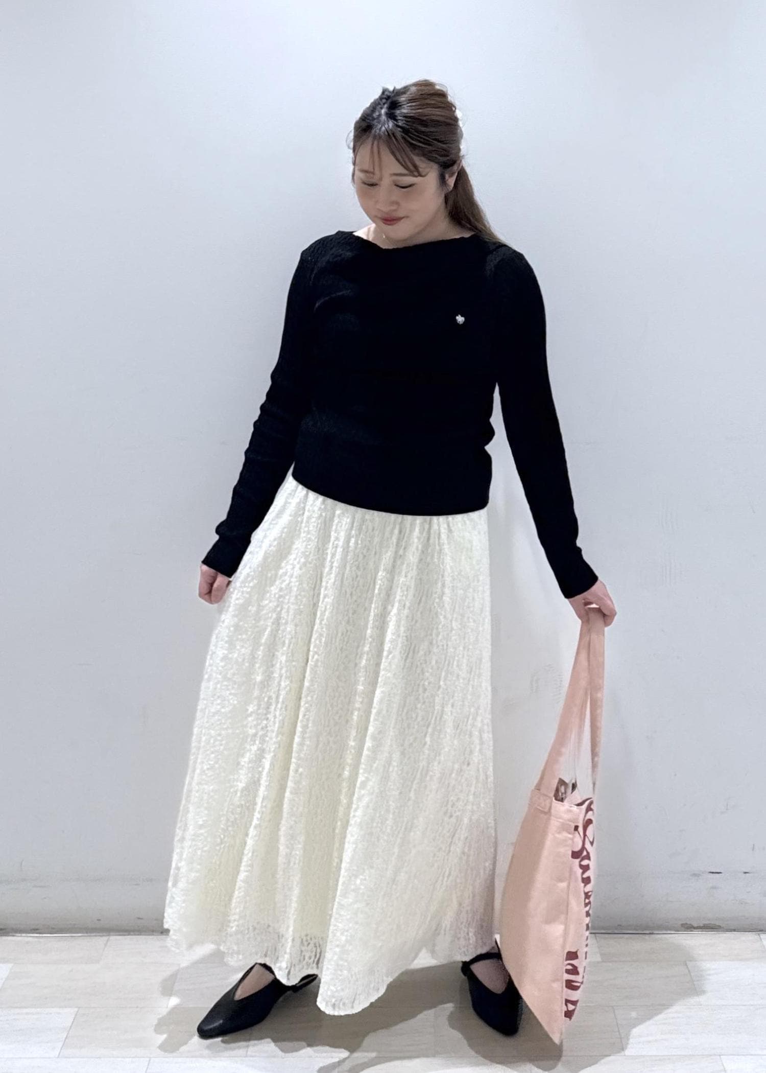 VISラメレースフレアスカートキナリ / F¥6,919レビューラメ感のあるフレアースカート⭐︎身長157cm/Fサイズ着用。レース素材の春夏らしい素材感で軽くて履きやすいです!ウエストがゴムでつくられているので窮屈感もなく楽に着ることができました。着丈がくるぶしぐらいの少し長めの着丈なのでヒール合わせだと足首が綺麗に見えますよ♪裏地付きではありますが、ホワイトのカラーが色によっては下着の透け感がありますのでお気を付けください*