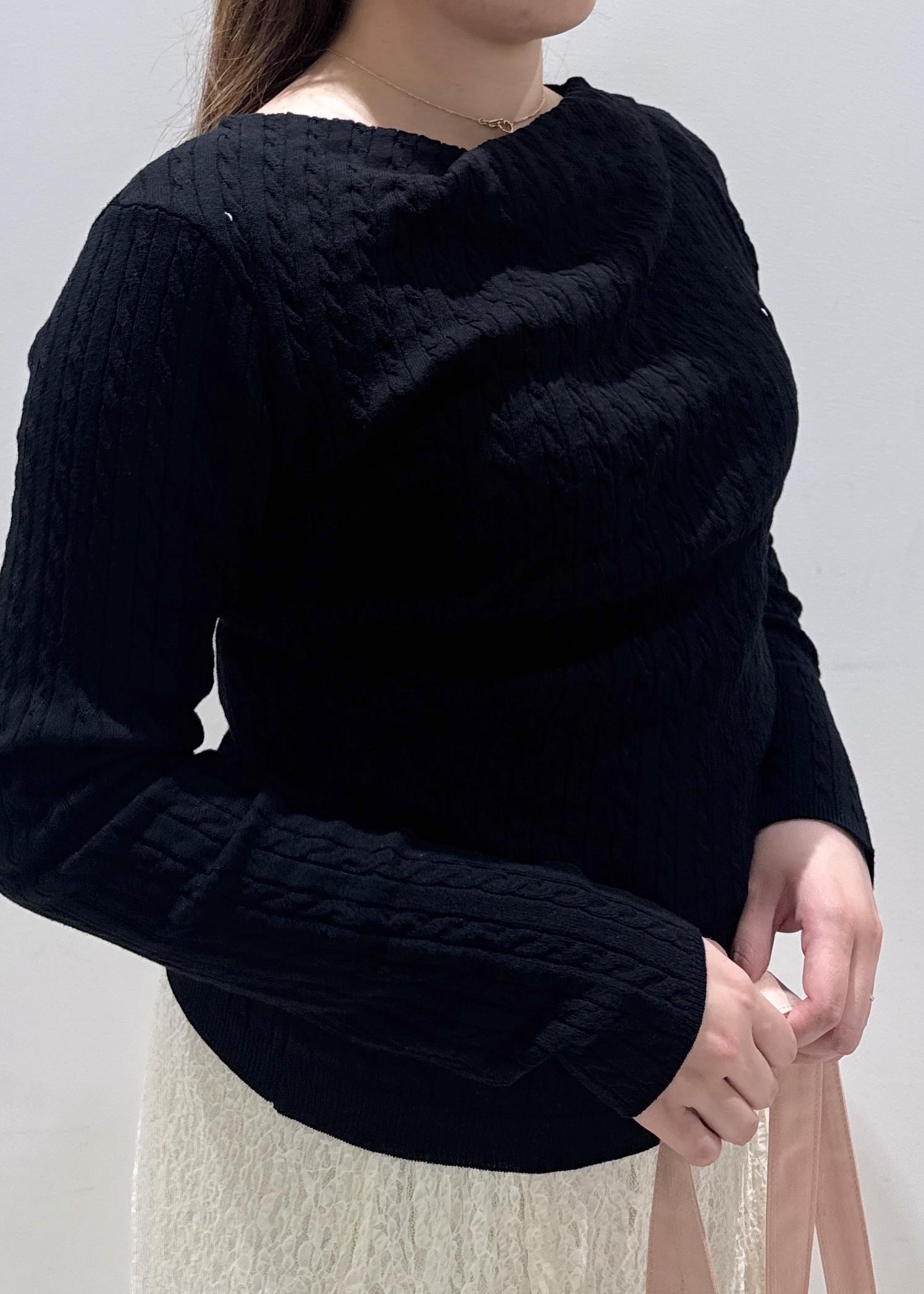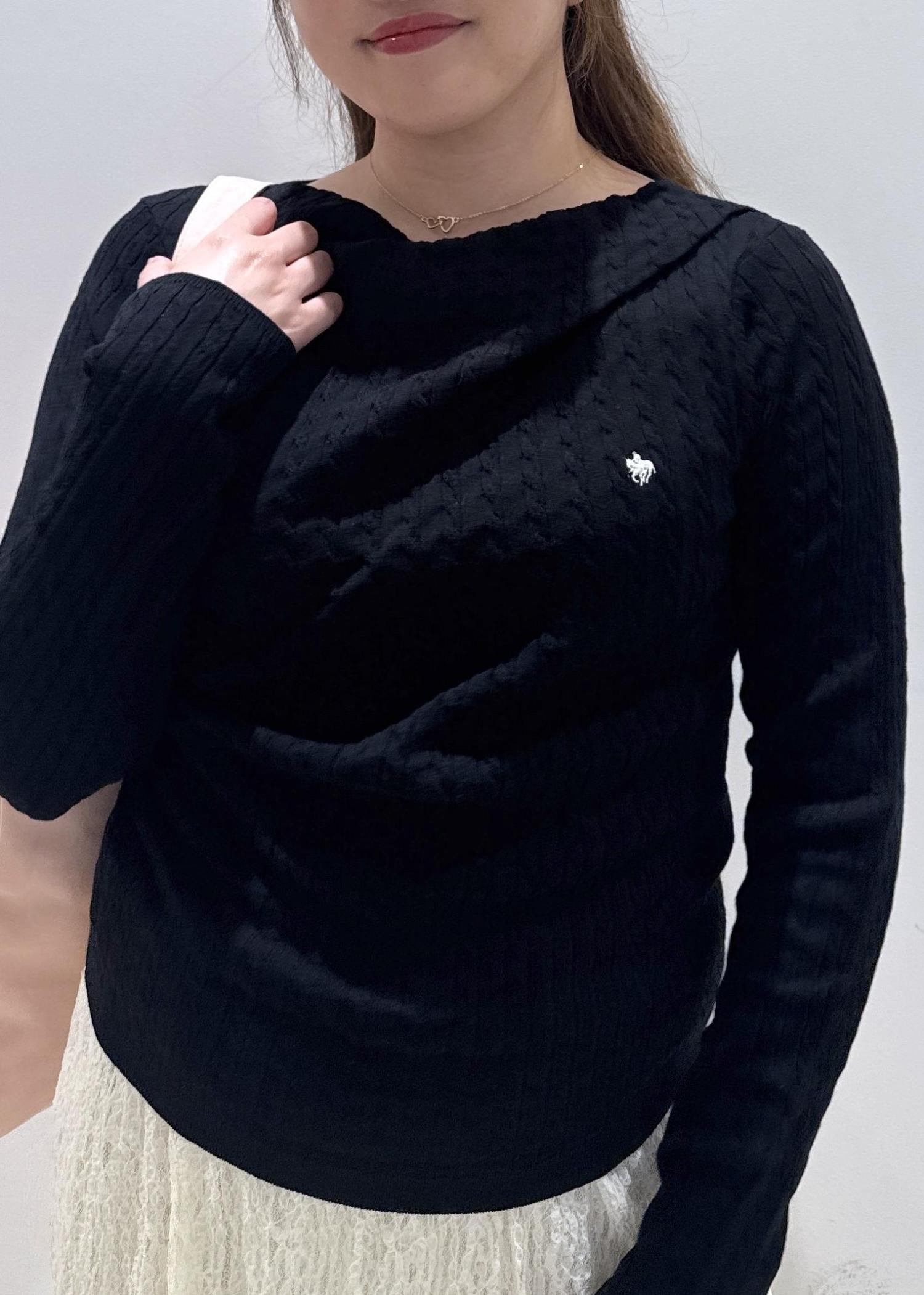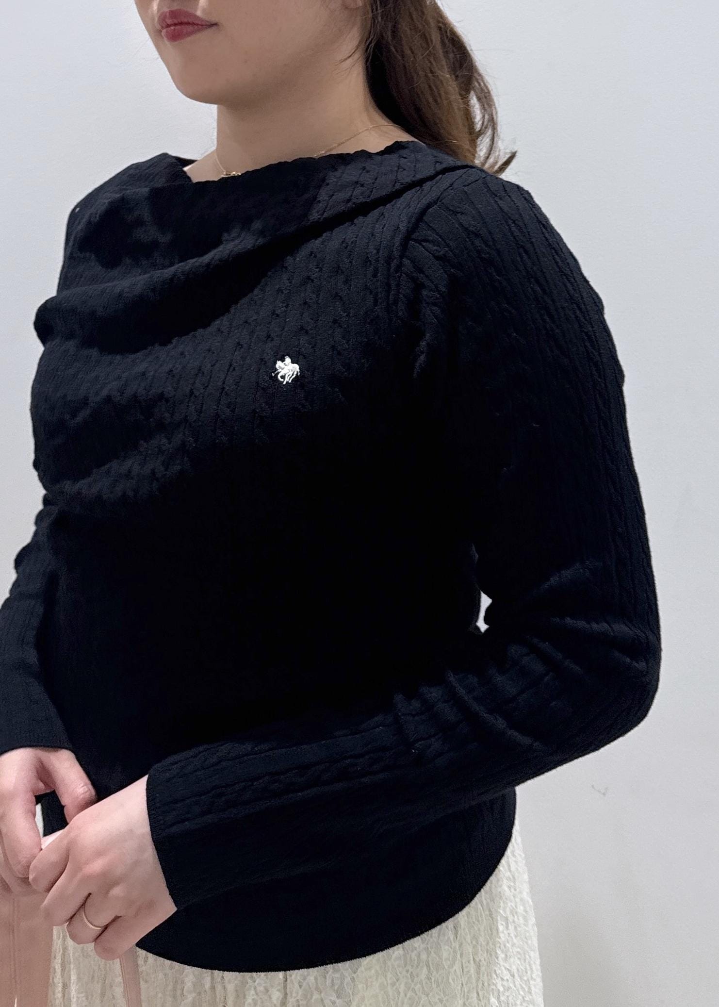 VIS【POLO BCS】VIS別注ケーブルドレープトップスブラック / F¥6,930レビューVIS×POLOのコラボアイテム⭐︎ケーブル柄のドレープデザインになって登場しました!生地感は見た目よりも分厚すぎずちょうど良い薄さで、今から春まで長く着れそうです。首元はデコルテラインが見えるぐらいの空きでした。2wayでオフショルとしても着用可能◎身長157cmで腰ぐらいの着丈なので、インしてもしなくてもどちらでも使えそうです。