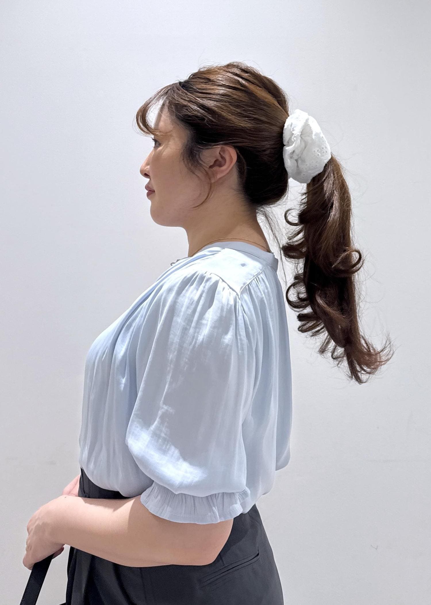 骨格ストレートなので、柔らかいサテン素材のブラウスは上半身が大きく見えないので個人的に毎年購入しています!本当にオススメです!!