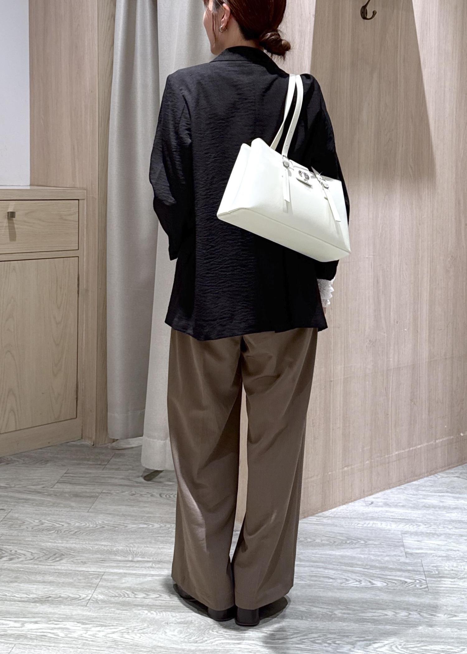 カジュアルにもキレイめにもどんなコーディネートにも合わせやすいシンプルなデザインで、私もリアルバイ候補なバッグです!!